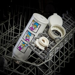 Thermos technology meets Disney fun with this drinks bottle featuring images of Daisy Duck alongside her instantly recognisable signature. Made of stainless steel, it keeps drinks hot for up to 12 hours or cold for up to 24 hours. Dishwasher safe on the top rack, for easy cleaning.