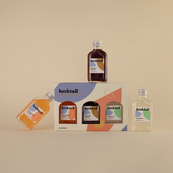 The Kocktail Classic Collection is the perfect gift for any cocktail lover. Hand mixed in small batches, by award winning bartenders, using only the finest ingredients. Shake with ice & enjoy. Espresso Martini Our Espresso Martini is a luxurious mix of vodka, a splash of Italian coffee liqueur and artisan cold brew coffee, bringing even more coffee oomph! It’s sumptuous, rich and creamy with the perfect blend of premium spirits and top-tier coffee to satisfy your need for the finest Espresso Martini at home. Passionfruit Martini Inspired by one of the world’s most popular cocktails, but with a slight twist. Our Passionfruit Martini is made using vanilla vodka, balanced by tart passionfruit and a hint of sourness to deliver a rich, indulgent finish, with flavours reminiscent of a hazy summer sunset. Margarita A Tequila classic, with big, bold flavours! Our Margarita is fantastic shaken with ice, but it's also amazingly versatile. You can blend it with ice for a frozen marg or add your own flavours to really make it your own. Add fresh strawberries or mango for a fruity twist, or even chilli for a spicy marg!
