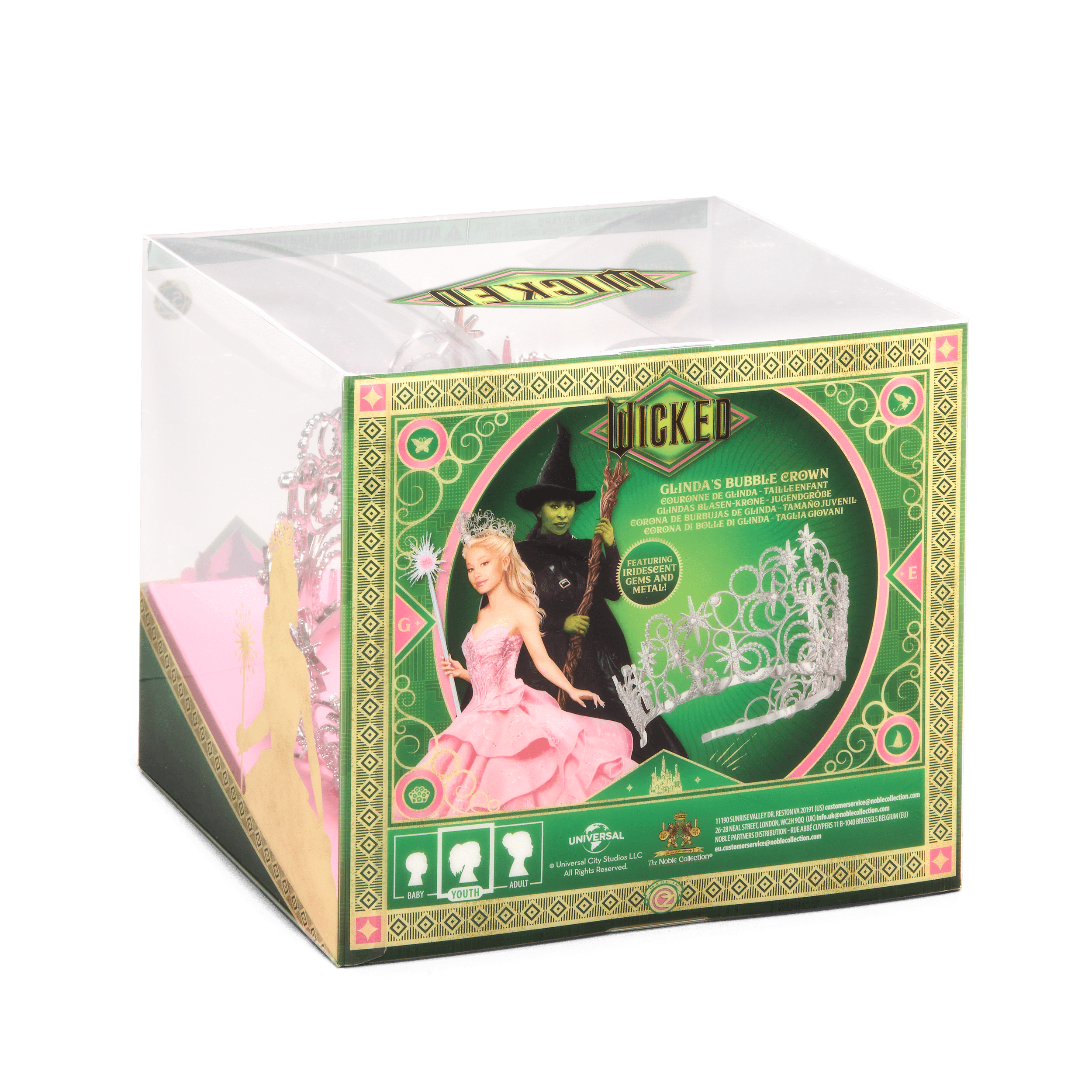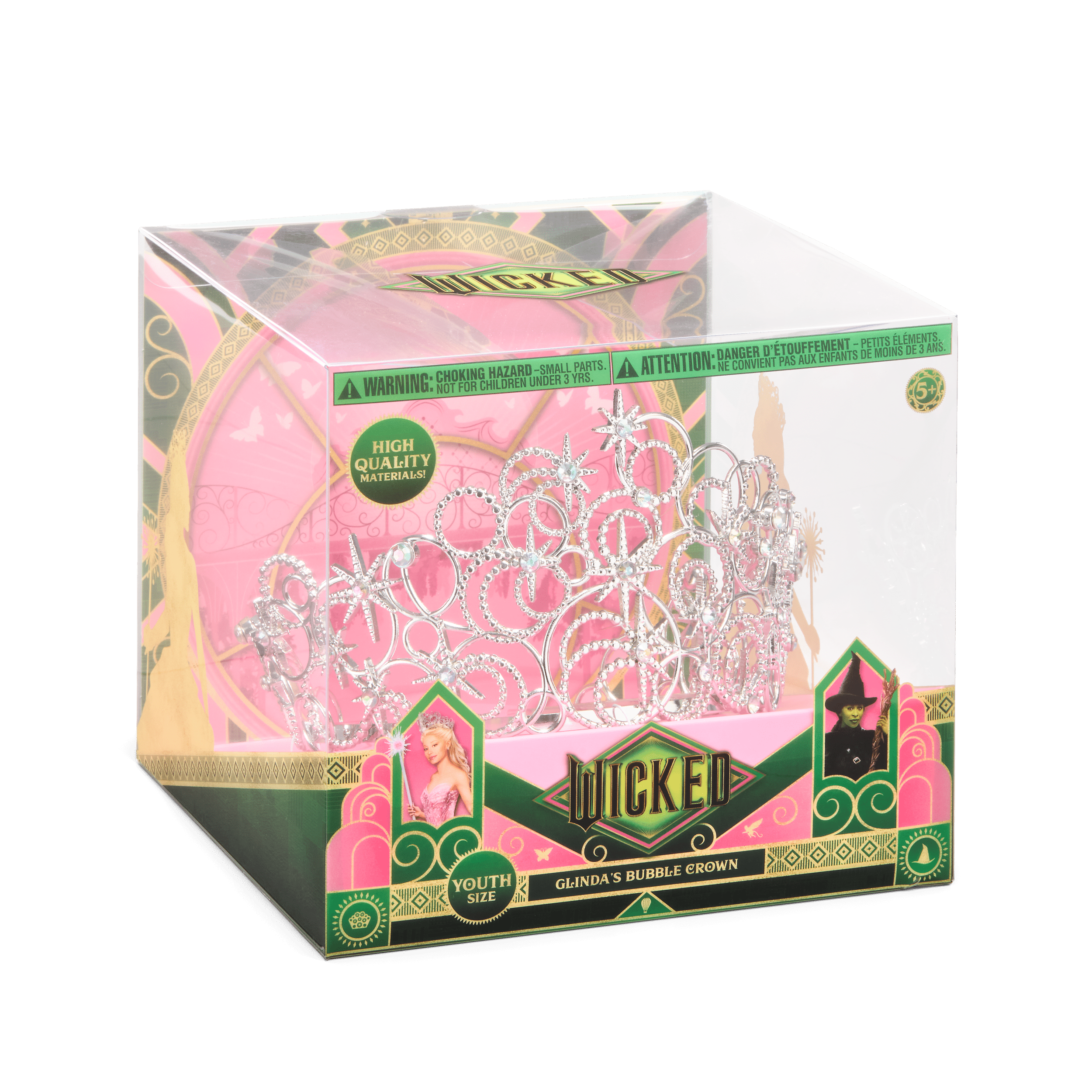 Shine like Glinda the Good Witch with this film-accurate youth-size replica of Glinda’s Bubble Crown, as seen in Wicked. The intricate details of Glinda’s Bubble Crown are recreated in shining metal with iridescent gems. This recreation of Glinda’s Bubble Crown is in youth size, measuring approx. 3” tall. Glinda’s Bubble Crown comes in Wicked-branded packaging. Recommended for Wicked fans age 5+