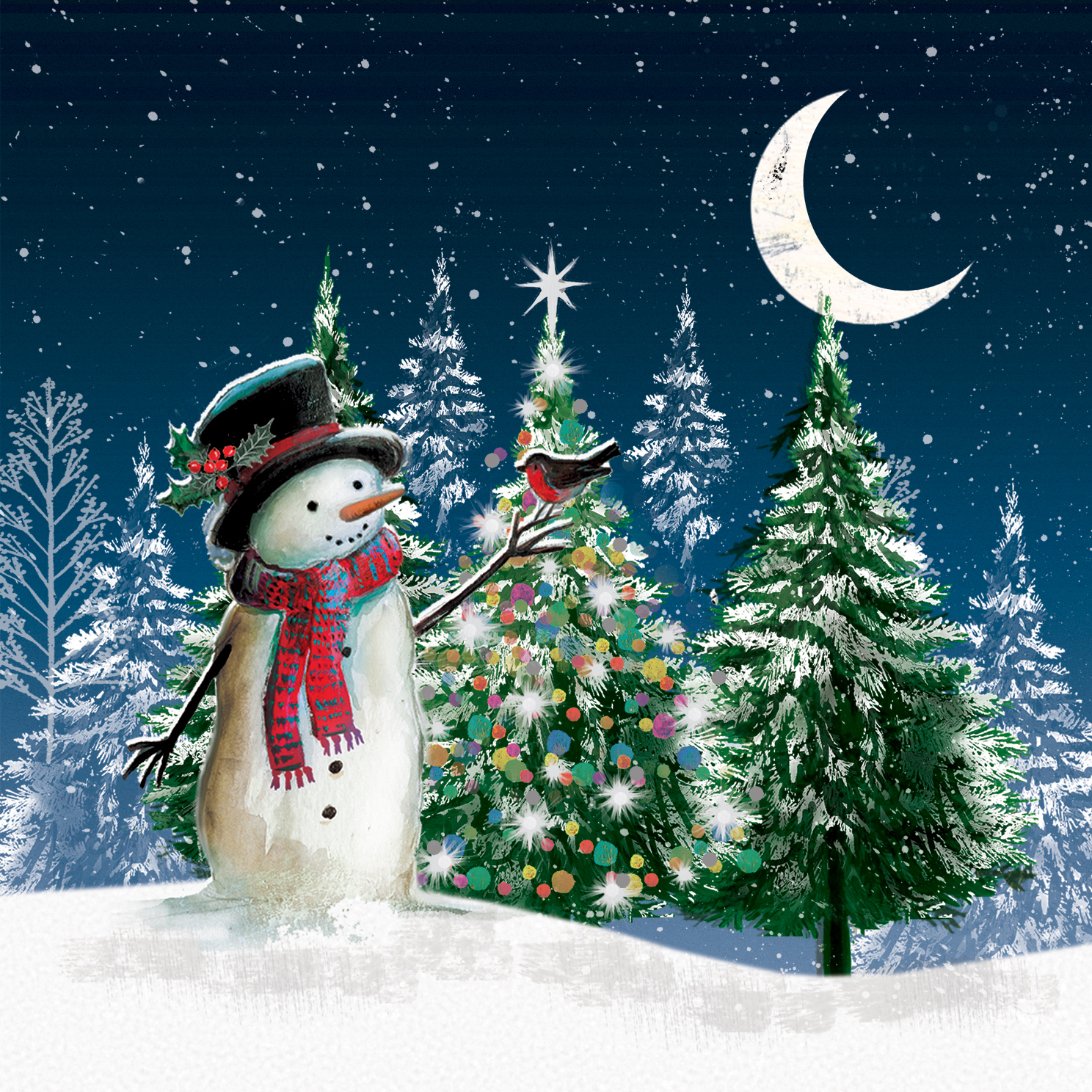 Moonlit Snowman Charity Christmas Cards (10 pack)