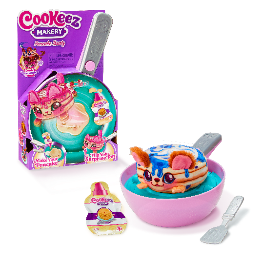 You wont believe your eyes when you flip the frying pan and reveal your Cookeez Makery Pancake Treatz Plush Surprise! Squeeze the pancake batter into the frying pan, shake the pan until it sizzles, then flip it to reveal a mystery surprise Pancake Treatz plush pet, with a yumming pancake smell, unique sounds and reactions! Will you find Blue Beary, Strawberry Pankitty and Choc Flip Pup? There are 3 soft and deliciously-scented Pancake Treatz plushes to collect and create. You can even reset the reveal to replay the fun over and over again!