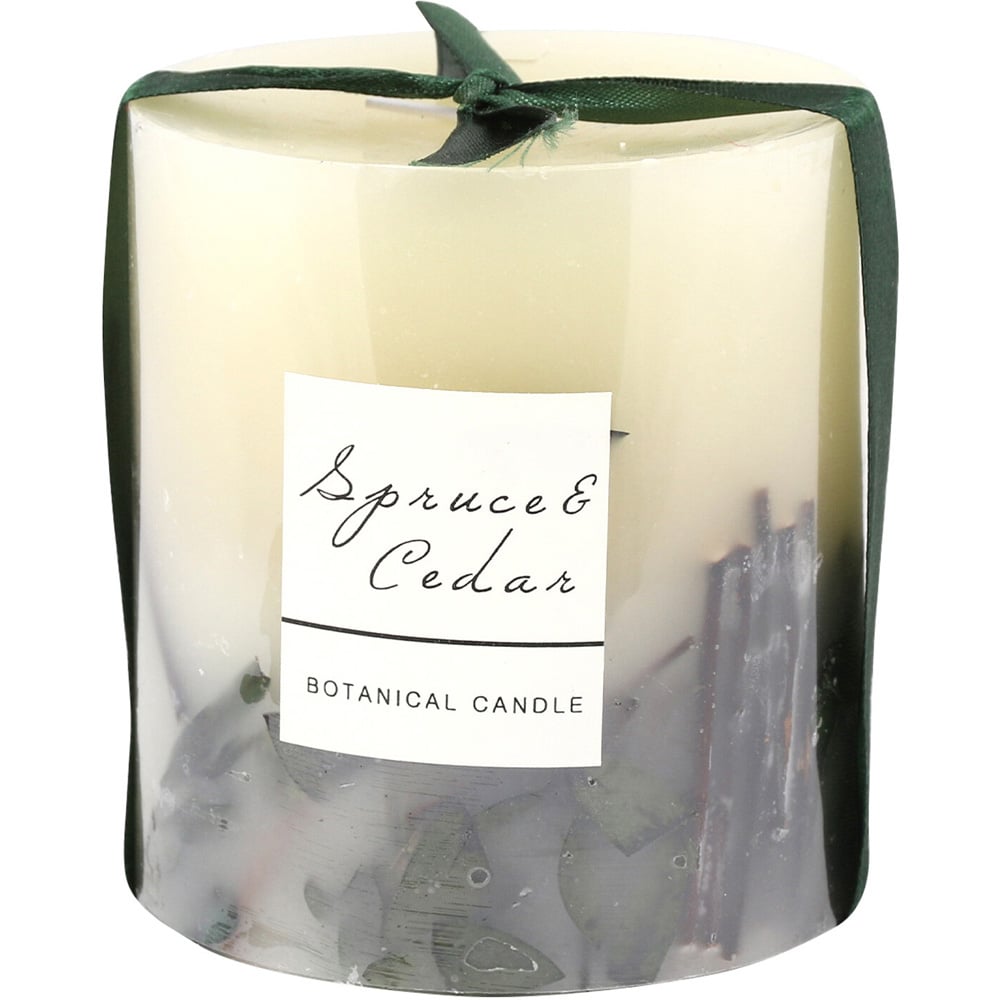 Spruce and cedar scent Woody and aromatic Creates an inviting atmosphere The Spruce and Cedar Botanical candle is nature's gift, captured in a candle. The fragrance is a captivating blend of freshly cut spruce and cedar branches, releasing their woody, aromatic symphony into your surroundings. Simply light the candle in a room of your choice for an inviting and relaxing atmosphere.