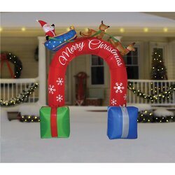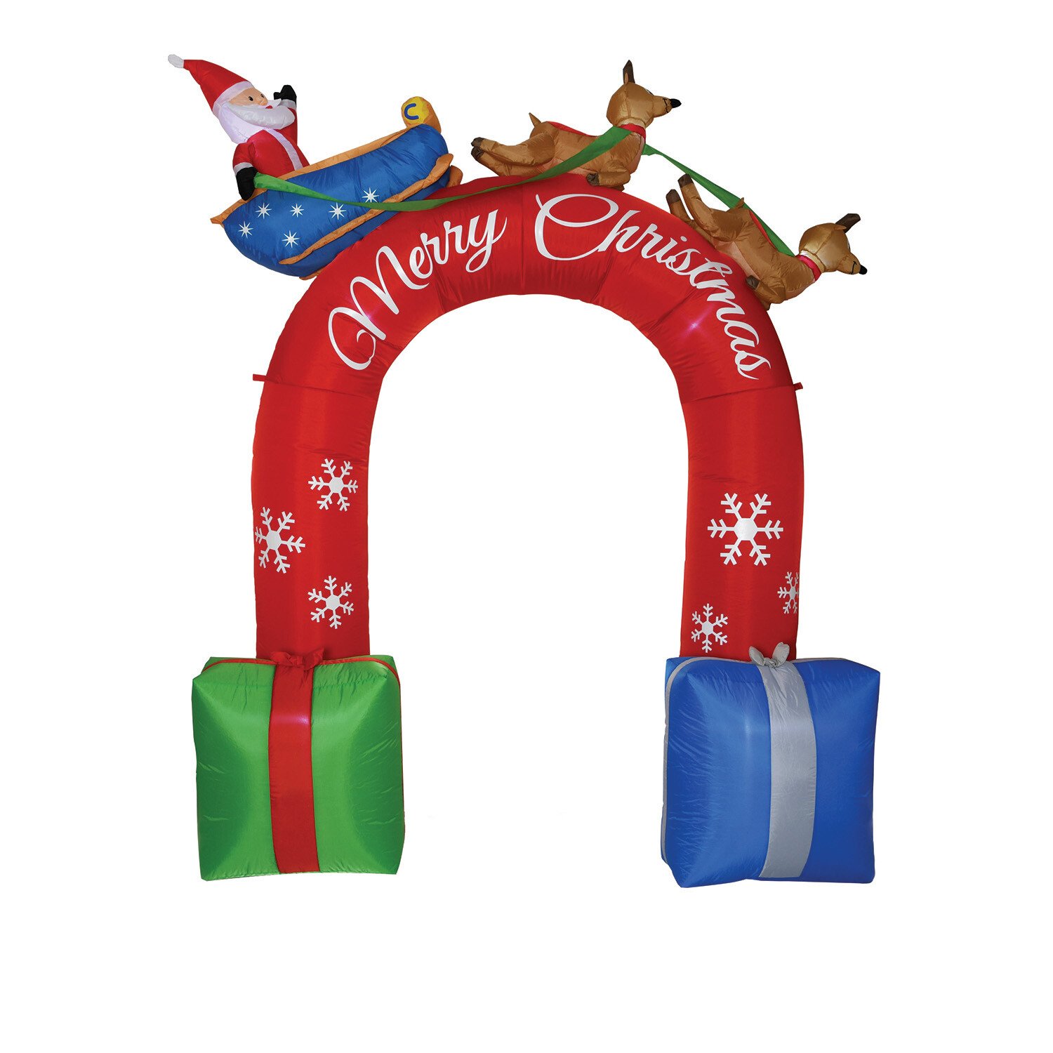Make your space stand out this Christmas with the Christmas Inflatable Arch 7ft. This delightful decoration quickly inflates and brings festive cheer to your space. Featuring a lovely seasonal design adorned with warm white LEDs, it lights up beautifully and brightly. Crafted from premium polyester and plastic, it comes with a handy cable. Perfect for creating a welcoming and festive atmosphere, it will become a hit with family and friends.