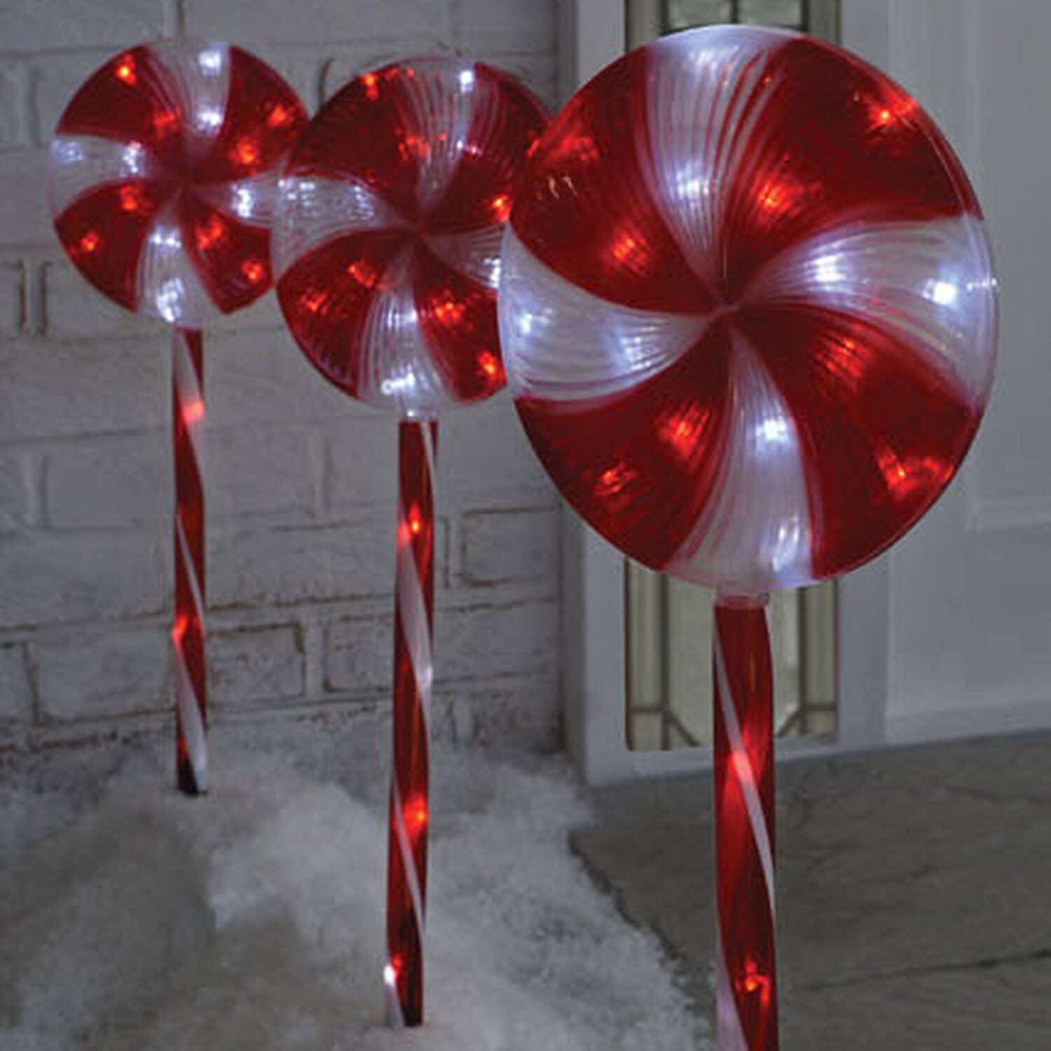 Fun and festive Bright white lights Perfect for paths and borders This Pack of 3 Lollypop Christmas Stake Lights are not only fun and festive, but they also create a beautiful border and path for guests to follow. With the candy cane design and the bright white lights, it's the perfect touch to make your Christmas celebrations even more colourful and cheerful.
