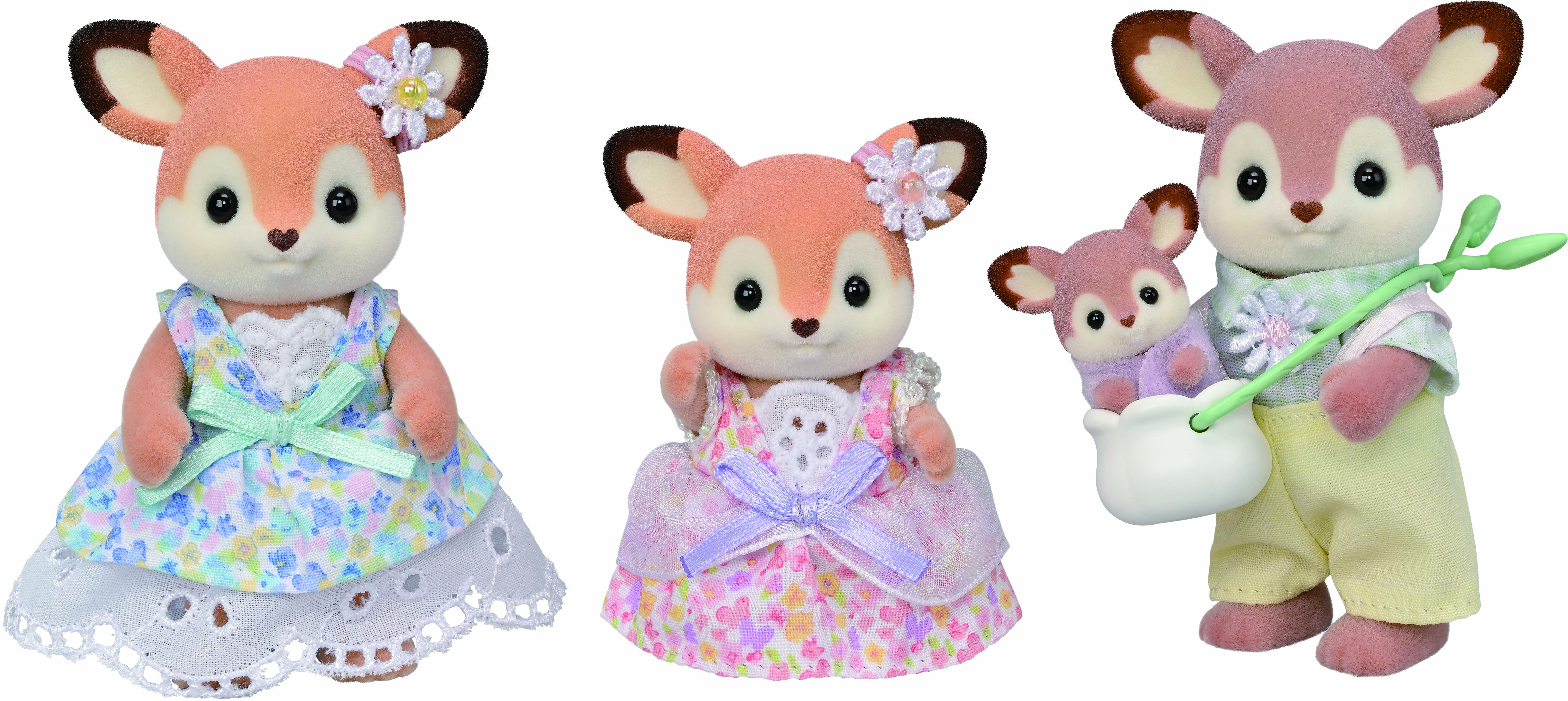 Welcome the newest family to Sylvania! The Deer Family love to explore the woodlands. Pack includes four figures in matching pastel outfits. The mother and daughter also have flowers which they can wear in their ears and the father can carry the baby in the tulip baby carrier. Available from SylvanianFamilies.co.uk, John Lewis, Fenwick and Very. Suitable from 3 yrs+