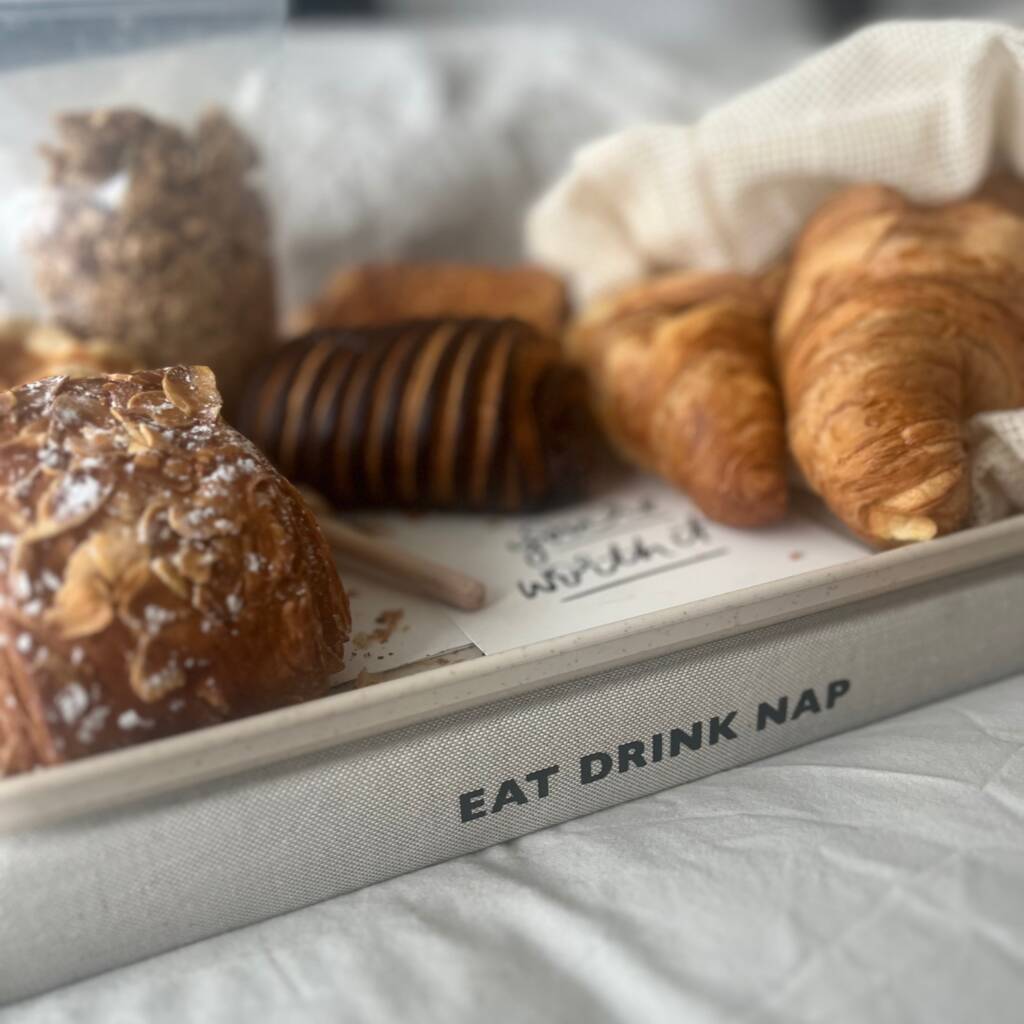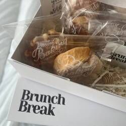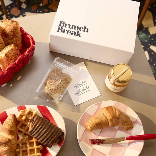 Treat yourself to brunch like a true Parisian with our classic, delicious Parisian style pastries & bakes. Your 'Parisians' Brunch' will include the following: 2 x All butter croissants 2 x Mini sugar waffles 1 x Almond croissant 1 x Hazelnut pain au chocolat or almond chocolate croissant (subject to availability) 1 x Pain au chocolat 1 x French toast granola Freshly Baked Food Packaging: Cardboard, Paper, Recyclable Materials Dimensions Brunch Box Size: W 280 x L 220 x D 110mm