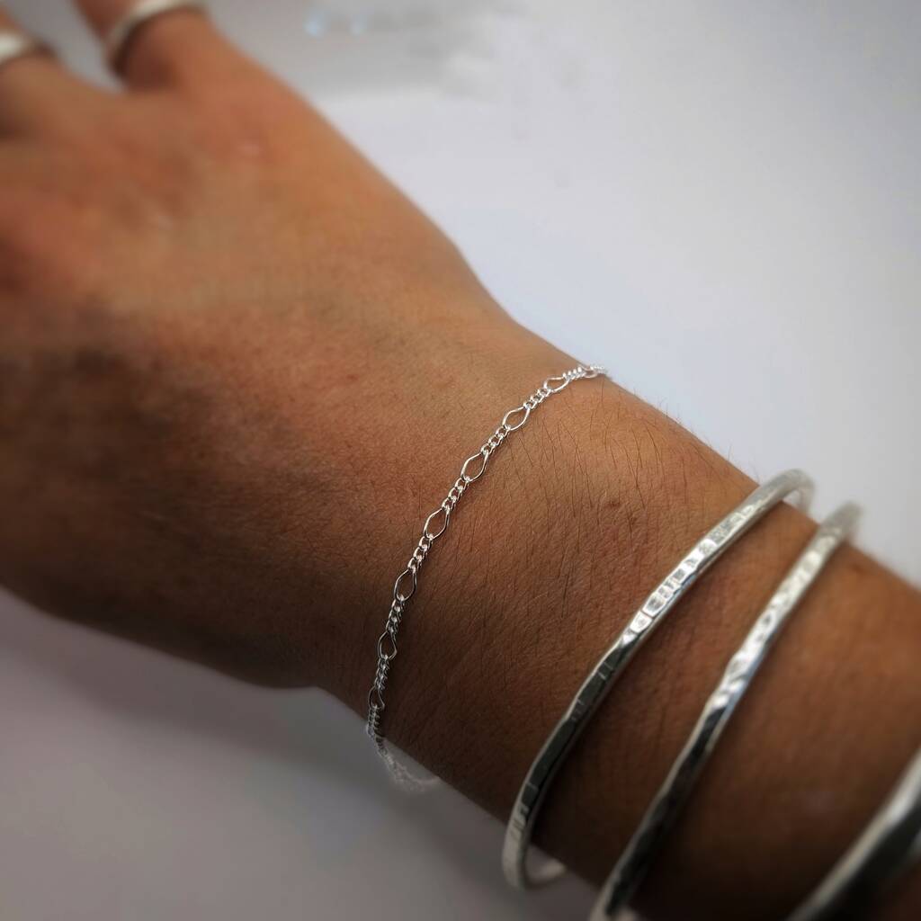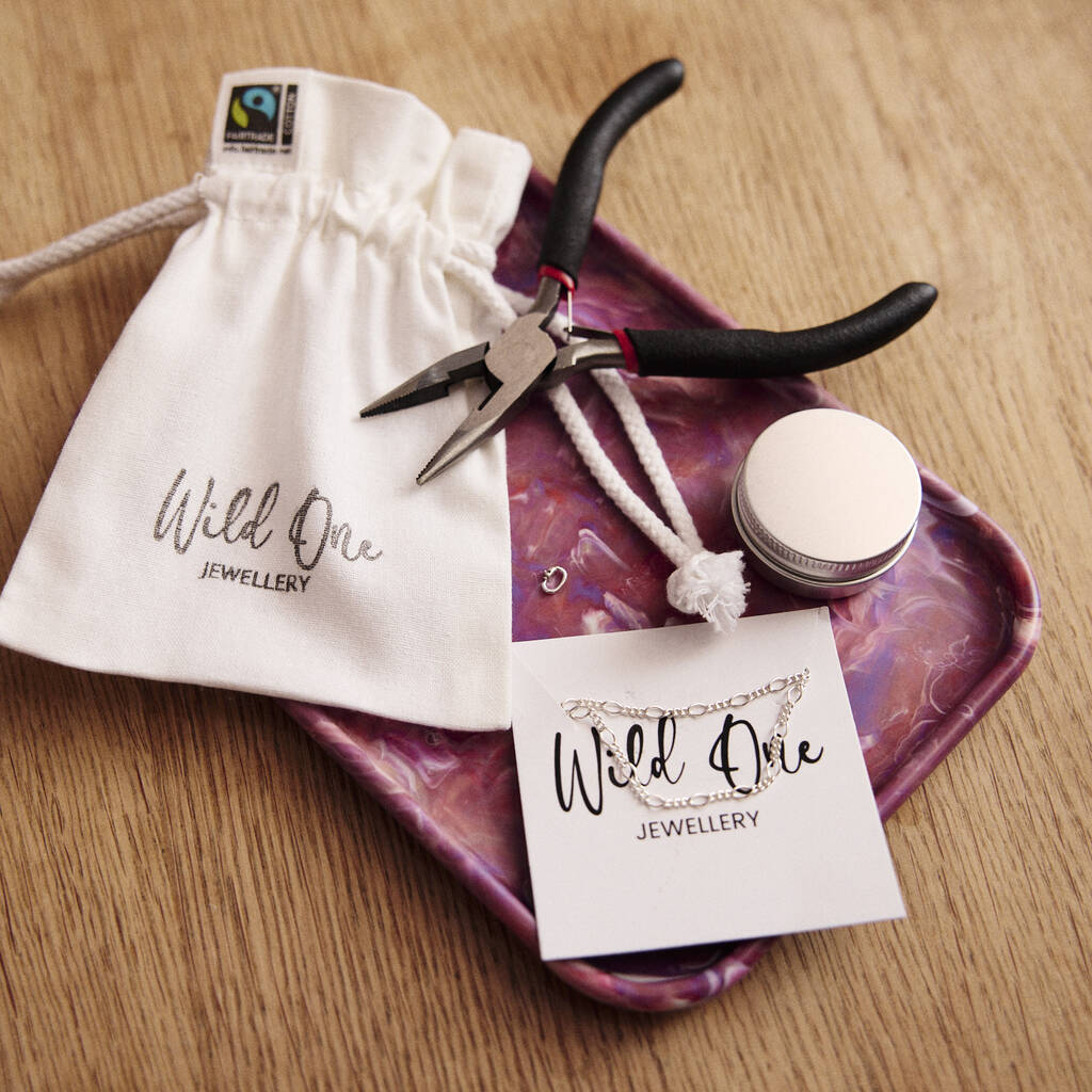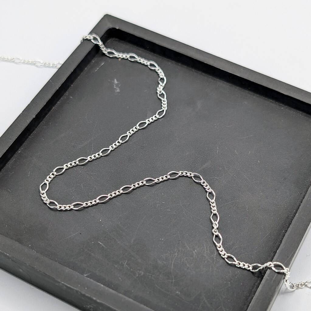 FIGARO CHAIN - Craft your own permanent piece of Sterling Silver Jewellery at your own pace, in your favourite space with your favourite people. Get creative with the Wild Ones Permanent Jewellery Kit with the Figaro Chain. Browse your chain online, place your order, unpack your kit complete with your choice of chain & follow our simple steps - once it's locked in, it's your forever jewellery. Whether it's a crafty get-together with friends, a special token of love between a couple or the ultimate hen party, our kits are the answer to creating something you can treasure. Join the party and let's set creativity free with Wild One Jewellery. Variations Begin by measuring your wrist or ankle, select your preferred chain style and length, then place your order. Your kit, complete with chain and necessary tools, will be promptly dispatched. Don't fret about starting – instructions and care guides are conveniently accessible through the included QR code. Easy peasy! Why not let your creativity run wild & customise your jewellery with our Sterling Silver charms, making each piece uniquely yours? These bracelets are perfect for mixing and matching to create a stacking set. Start your Wild One journey & unleash your creativity right from your own little place on this planet.Crafted from 925 Sterling Silver