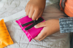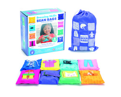 "Help little hands master real-world dressing skills with the Dressing Skills Bean Bags. The bean bags feature illustrations of 8 commonly used items of clothing or shoes on one side, with their matching fastenings on the other. As they use the zip, toggle, buttons, shoelace, and more, children will become more confident at getting undressed and dressed on their own. After the learning fun is over, the bean bags store inside the included drawstring bag. The Activity Guide and packaging are multilingual. Each bean bag measures 10cm x 10cm. 10 Pieces "