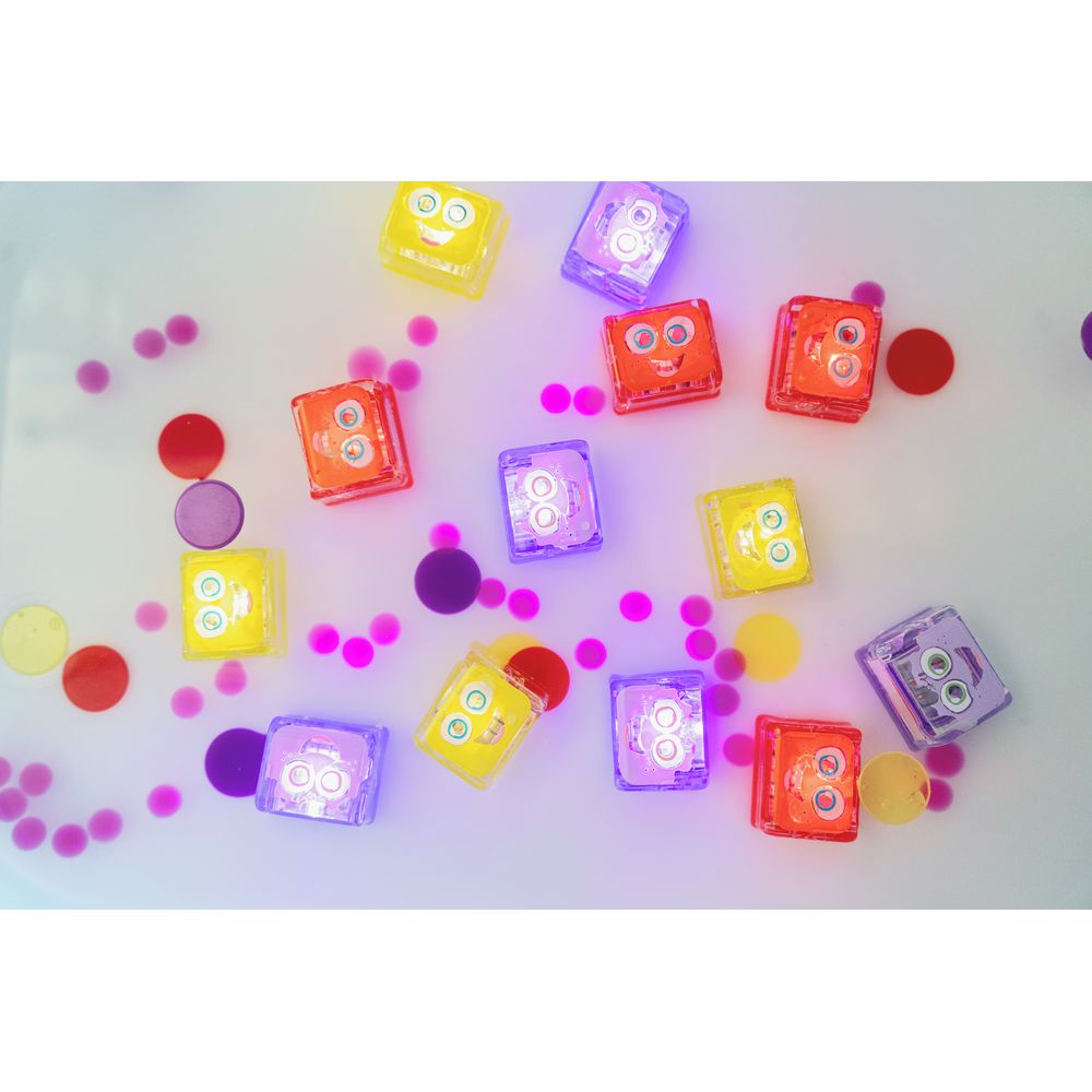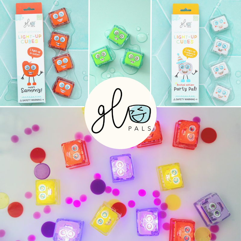 Enhance your water play with this set of 4 colourful light up cubes. There are six characters to collect, each showcasing a different colour, with the Party Pal rotating through different colour light options! Featuring cute faces each cube emits a glowing light upon contact with water making these ideal to pop in the bath for a calming, sensory experience, or to add some fun to your water-based playtime! Each pack contains four colourful cubes, which can be used with a Glo Pal character (sold separately) or on their own as they float around with their happy smiling faces. The lights will stop glowing once removed from the water however for the best use simply give them a quick wipe dry to preserve the battery for next time. Suitable for 3 years plus.