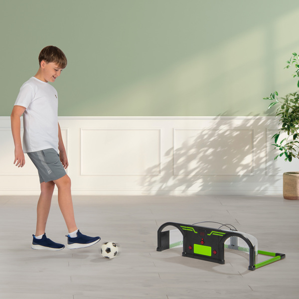 Interactive football trainer with 2 modes; Trainer mode and challenge mode Electronic scorer with target LED lights Comes with football