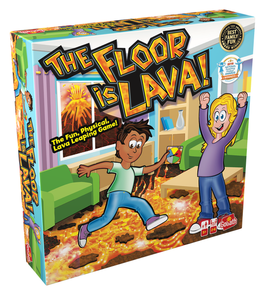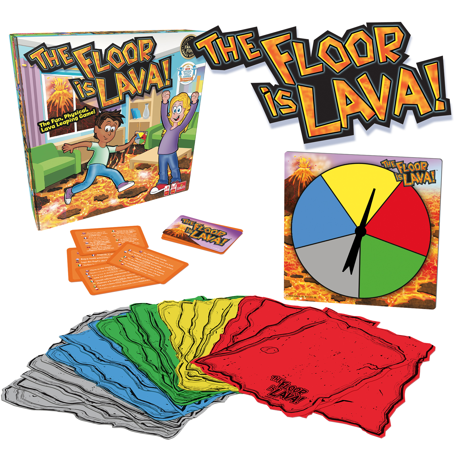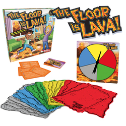 We’ve all played some variation of The Floor is Lava! You imagine the floor is Hot Lava and hop from cushion to couch to table across the room to stay off the floor. NOW, with The Floor is Lava game, the furniture gets a break! A Spinner, 25 coloured foam tiles, and 27 action cards ramp-up the fun on this classic game of imagination and adventure. Remember, DON’T TOUCH THE FLOOR! No batteries required.