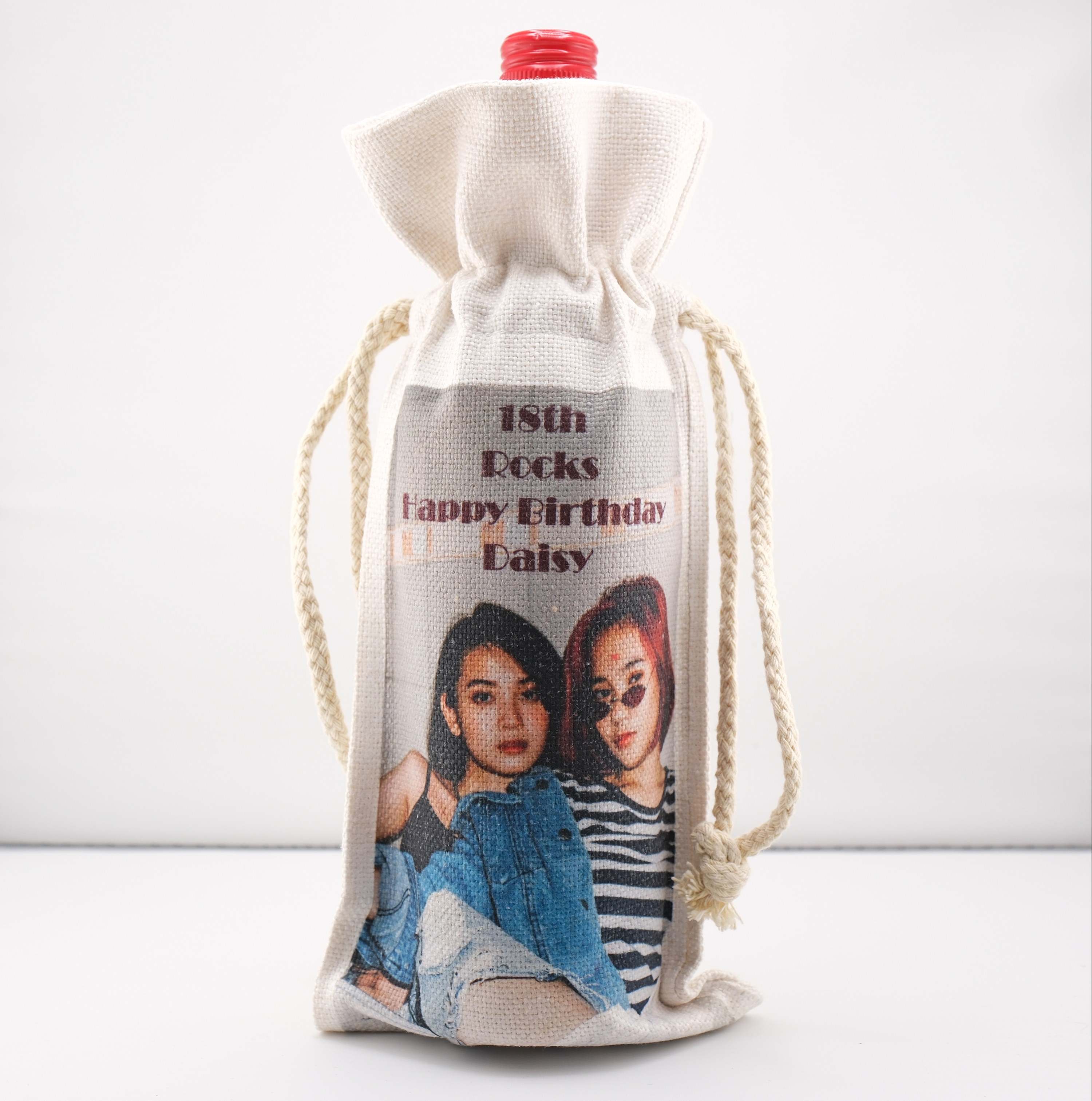 Crafted from of high-quality polylinen fabric, with easy drawstring closure Wrap up their favourite bottle in festive style Estimated delivery within 4 working days