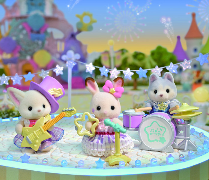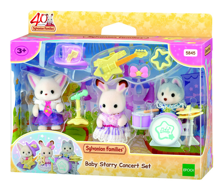 Commemorating Sylvanian Families' 40th anniversary, this special edition set comes with three characters, the Chocolate Rabbit baby, Fennec Fox baby, and Husky baby, all wearing starry-themed outfits. It also includes a drum, guitar and tambourine, so the babies can put on a fun, musical performance! Available from Sylvanianfamilies.co.uk. Suitable for 3 yrs +