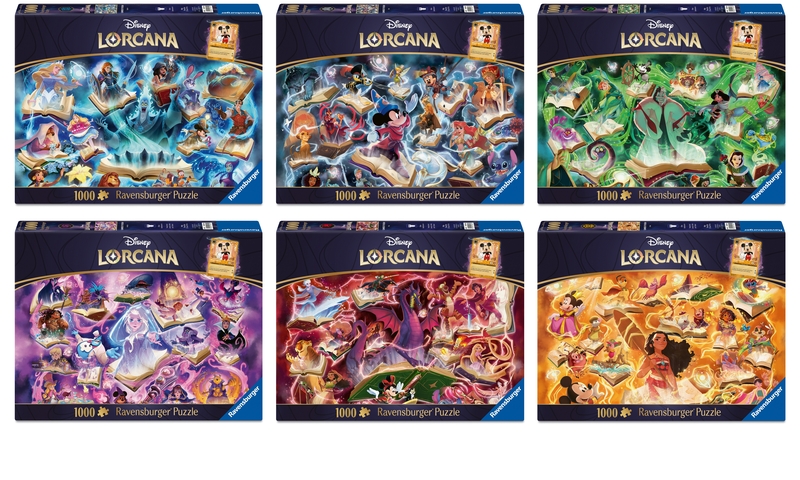 Introducing Glimmers of the Realm, a new collection of 1,000-piece puzzles from Ravensburger featuring official artwork from the Disney Lorcana Trading Card Game, now reimagined in a collectible puzzle format. Each puzzle showcases a different group of beloved Disney characters like Mickey Mouse, Elsa, Moana, Mulan, and Beast, reimagined through vivid, magical storytelling and breathtaking card illustrations. There are six unique designs in the collection, each themed to the colour of a “magical ink” that powers the realm of Lorcana. Each puzzle includes a Mickey Mouse – True Friend promo card. Emerald, Sapphire, Steel, Amber, Ruby and Amethyst editions available. Available worldwide from 1st September.