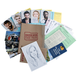 - Contents: x1 large envelope, x1 case folder with 9 documents, x1 missing person report, x5 suspect profiles, x1 photo envelope with 9 photos, x1 magnifying glass, x3 bonus envelopes
