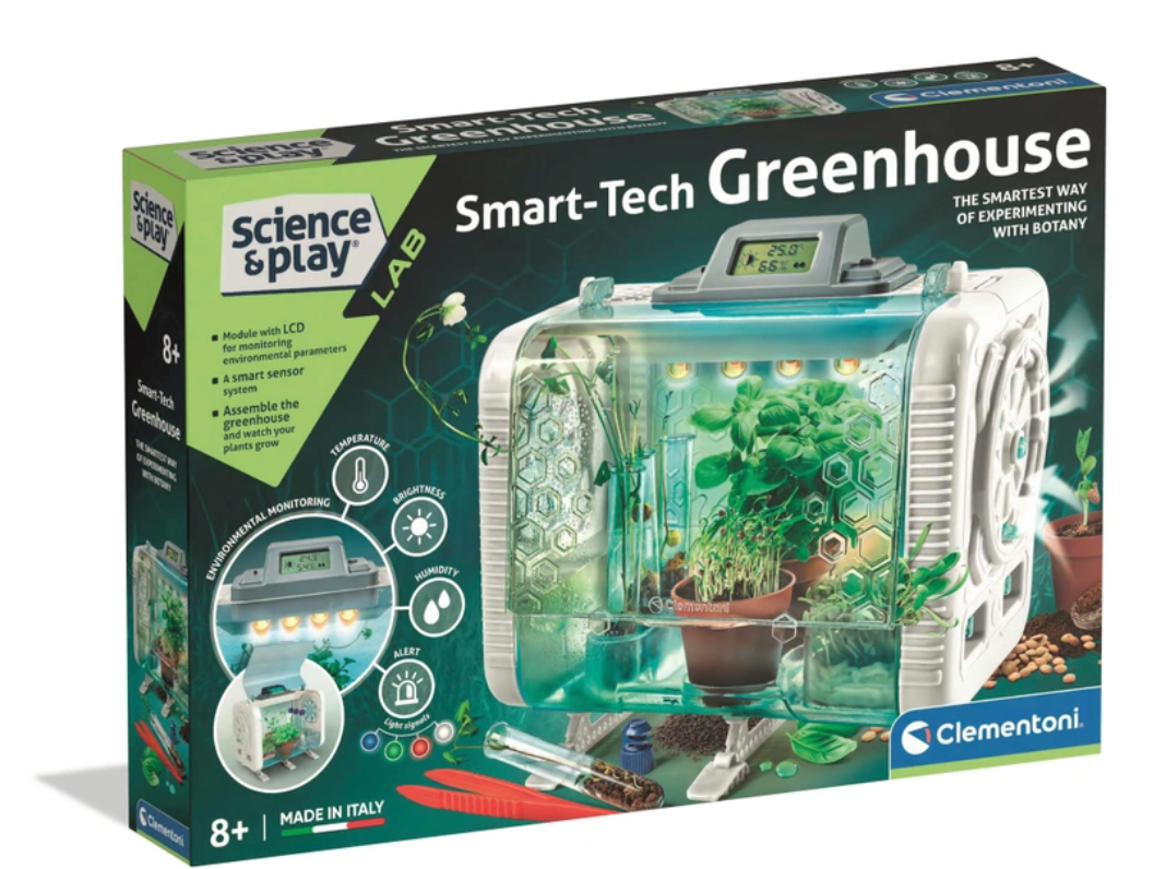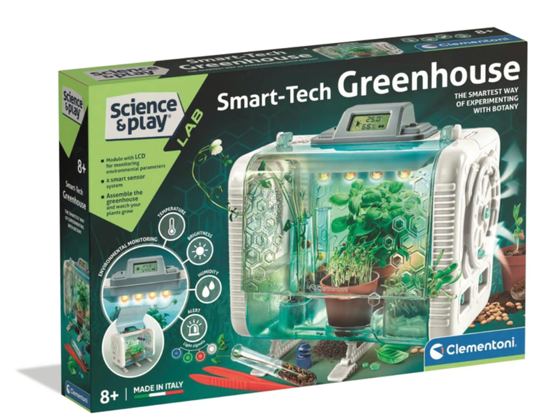 The Clementoni Smart Tech Greenhouse turns plant care into a fun science adventure. With sensors, an LCD screen, and LED alerts, kids monitor temperature, humidity, and light in real time. Three growth modes and interactive features help children learn biology basics while nurturing plants and discovering the wonders of nature.