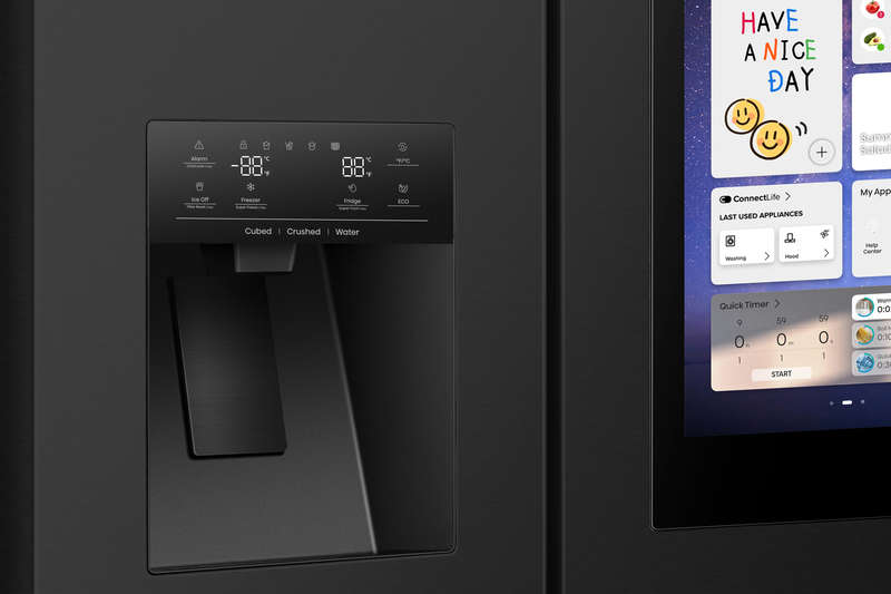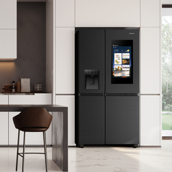 The Hisense PureFlat Eclipse American Fridge Freezer has a sleek PureFlat design and an impressive 614 litre capacity makes a seamless and functional addition to any modern kitchen. The Total No-Frost technology maintains a constant temperature, preventing irritating ice build-up and ensuring your food stays fresher for longer. The Metal-Tech Cooling evenly distributes cold air throughout the fridge, so you’ve got a product that’s both high-tech and high-performance. This model pairs as a smart hub in the heart of your home, packed with cutting-edge tech including a large built-in touch display. From here, you can manage your food storage, leave digital notes, view recipes, and even sync your calendar - all from your fridge door. One of the standout features which comes as part of this smart hub is Dish Designer, which utilises the latest AI technology to scan the contents of the user’s fridge to suggest recipes and meal ideas and has the potential to send the correct settings and information directly to your oven. You can even set dietary restrictions and meal preferences, taking all the hard work out of deciding what to have for dinner!