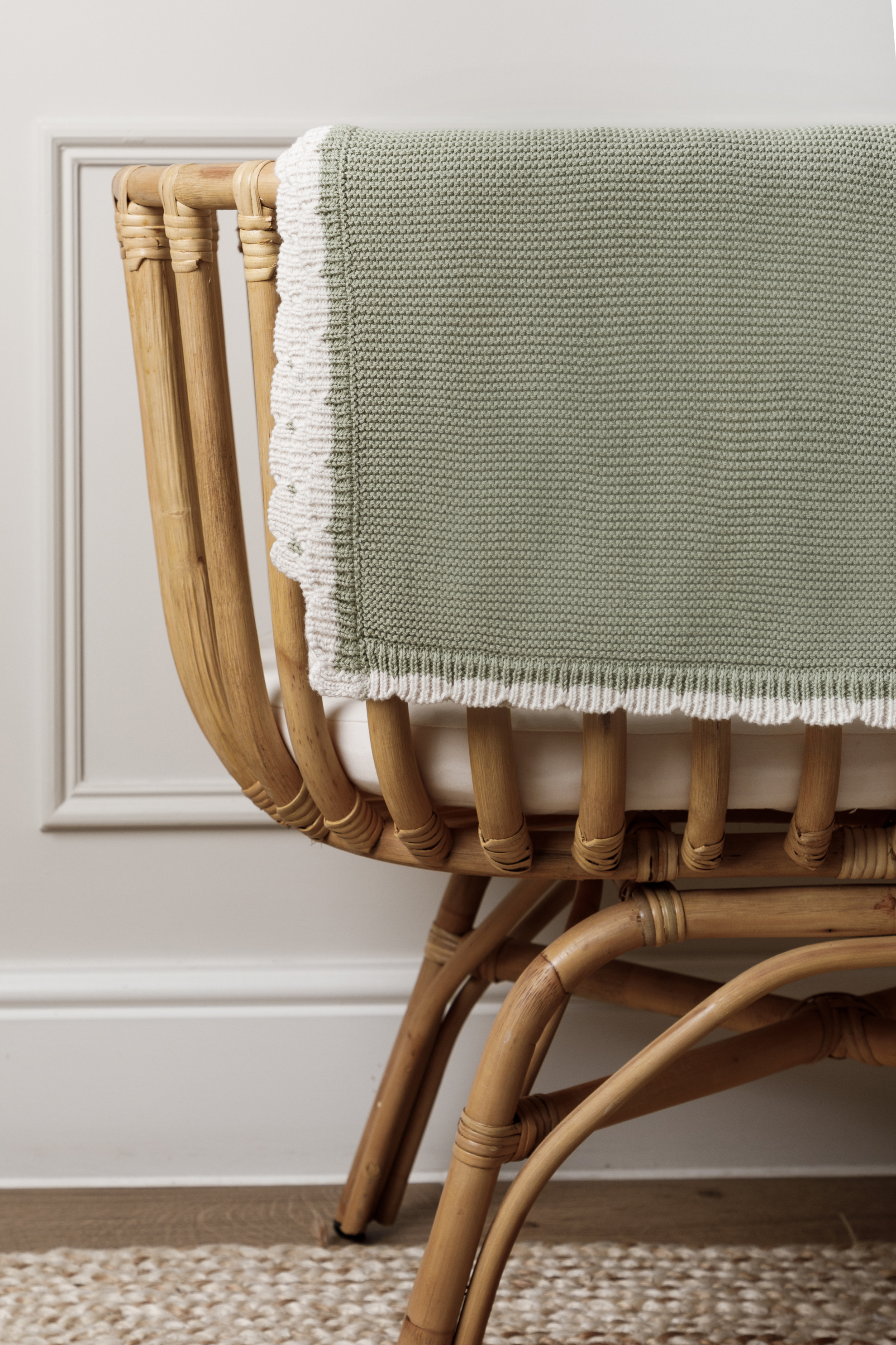 Organic Cotton Scallop Knit Tipped Baby Blanket - Sage/Oat
