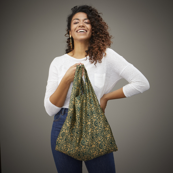 Never forget your reusable bag again! This silky, lightweight foldaway bag is perfect for on the go. These beautiful shoppers are handmade by Indian artisans using recycled saris, making each one beautifully unique. Please note; the colours will vary and each one is unique. Dimensions: 38cm x 35cm
