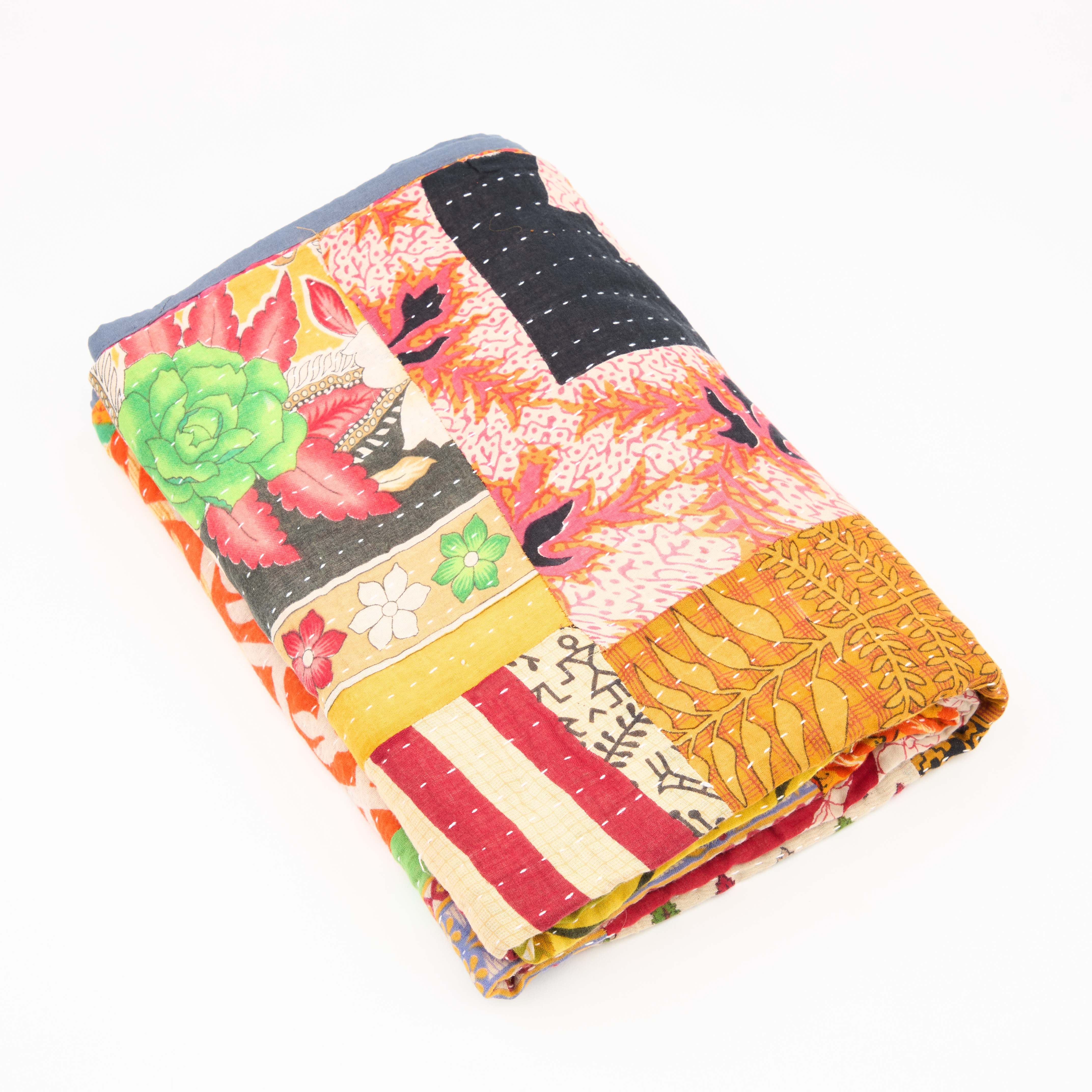 This colourful handmade Sari Kantha Throw, is made from recycled saris and a contrasting kantha stitch. Add a unique touch to your home with this beautiful throw. Please note; each Sari Kantha Throw is beautifully unique, colours and patterns will vary. Dimensions: H 1300 mm x W 1900 mm Handmade in India