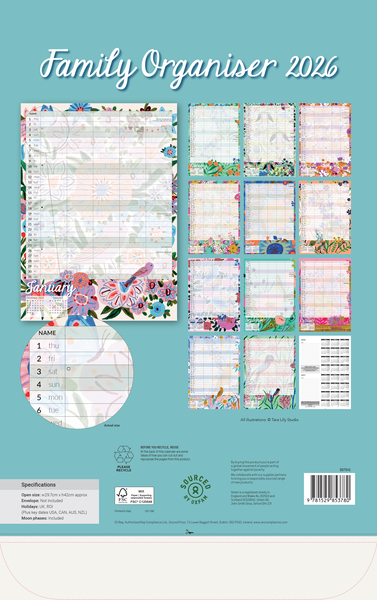 Stay perfectly organised all year long with the Family Organiser Calendar 2026 — the ultimate wall planner designed for busy homes. With five individual columns, each family member gets their own space to track appointments, school events, activities, and reminders. The clean, colourful layout makes planning easy and enjoyable, hang it in the kitchen, hallway, or office — wherever your family gathers. A perfect gift for parents, teachers, or anyone who loves staying organised in style. Dimensions: H 420 mm x W 295 mm x D 4 mm