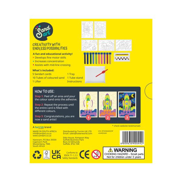 Blast off into creativity with our Neon Space Sandart Kit! Part of the colourful Neon Range, this set includes five cosmic postcard designs featuring rockets, planets, and stars, paired with non-toxic neon sand tubes to make every space scene glow. Using the simple peel, pour, and sprinkle method, kids can bring the galaxy to life with dazzling neon shades. It’s a fun, mess-free way to spark imagination while exploring art, colour, and the wonders of space. Perfect for parties, rainy days, or gifting, this kit helps children develop fine motor skills, focus, and creativity—while leaving them with stellar artworks they’ll be proud to display.