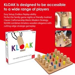 Why settle for ordinary when you can play KLOAK? This clever strategy game challenges players to outthink, outmaneuver, and outsmart their opponents. With simple rules but endless possibilities, KLOAK is quick to learn, exciting to play, and different every time. Why You’ll Love It: Engaging strategy game for kids, teens, and adults Multiple setups for varying difficulty levels Builds critical thinking and problem-solving skills Perfect for family game nights, couples, or group play Fast to learn, endlessly replayable, and fun for everyone