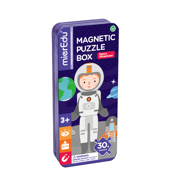 Blast off into learning with the Space Adventures Magnetic Puzzle Tin! Children aged 3+ can create and recreate their own intergalactic scenes using colorful, durable magnets. As they arrange astronauts, rockets, and planets, kids practice fine motor skills, problem-solving, and imaginative storytelling. The compact tin makes this set perfect for travel, quiet play, or screen-free fun anywhere. Key Features: Portable magnetic playset in a travel tin Includes themed magnets for building space scenes Encourages storytelling, creativity, and fine motor skills Screen-free entertainment for home or travel Suitable for ages 3+