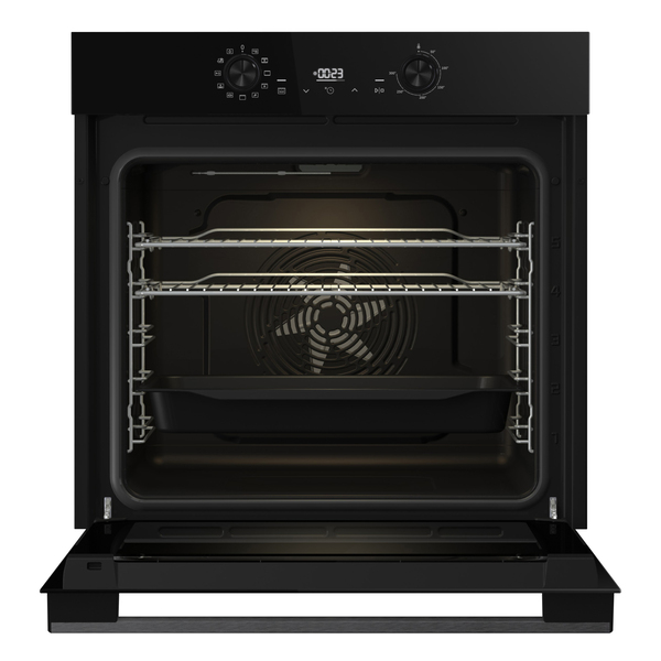 Upgrade your kitchen with the Hisense BI622ABPGUK built-in electric oven - where generous capacity, versatile cooking and smart convenience come together in one sleek, stylish appliance. With a spacious 77 litre interior and five cooking levels, this oven gives you the flexibility to cook multiple dishes simultaneously or host family-size meals without compromise. At the core of its cooking performance is Even Bake technology, inspired by traditional wood-fired ovens, which allows hot air to circulate evenly around your food. The outcome: crisp, golden exteriors and moist, tender interiors every time. Whether you’re baking loaf cakes, roasting whole birds or grilling vegetables, this oven consistently delivers professional-style results. For those days when you want something quick and satisfying, the dedicated Pizza Mode reaches up to 300 °C, replicating a traditional pizza oven to give you a perfectly crisp base, golden crust and melted toppings in minutes. Meanwhile, Frozen Food Mode is designed to give your favourites like fries, nuggets or croissants a fast, reliable finish - perfect for when time is tight but quality still matters. Cleaning up is smoother than ever thanks to the Steam Clean function. Simply add a little water to the tray, activate the cycle and let hot steam soften grease and food residue - when it’s done you’ll just need a quick wipe, no heavy scrubbing required. The oven also features a Dynamic Cooling System, with sensors that monitor exterior tem
