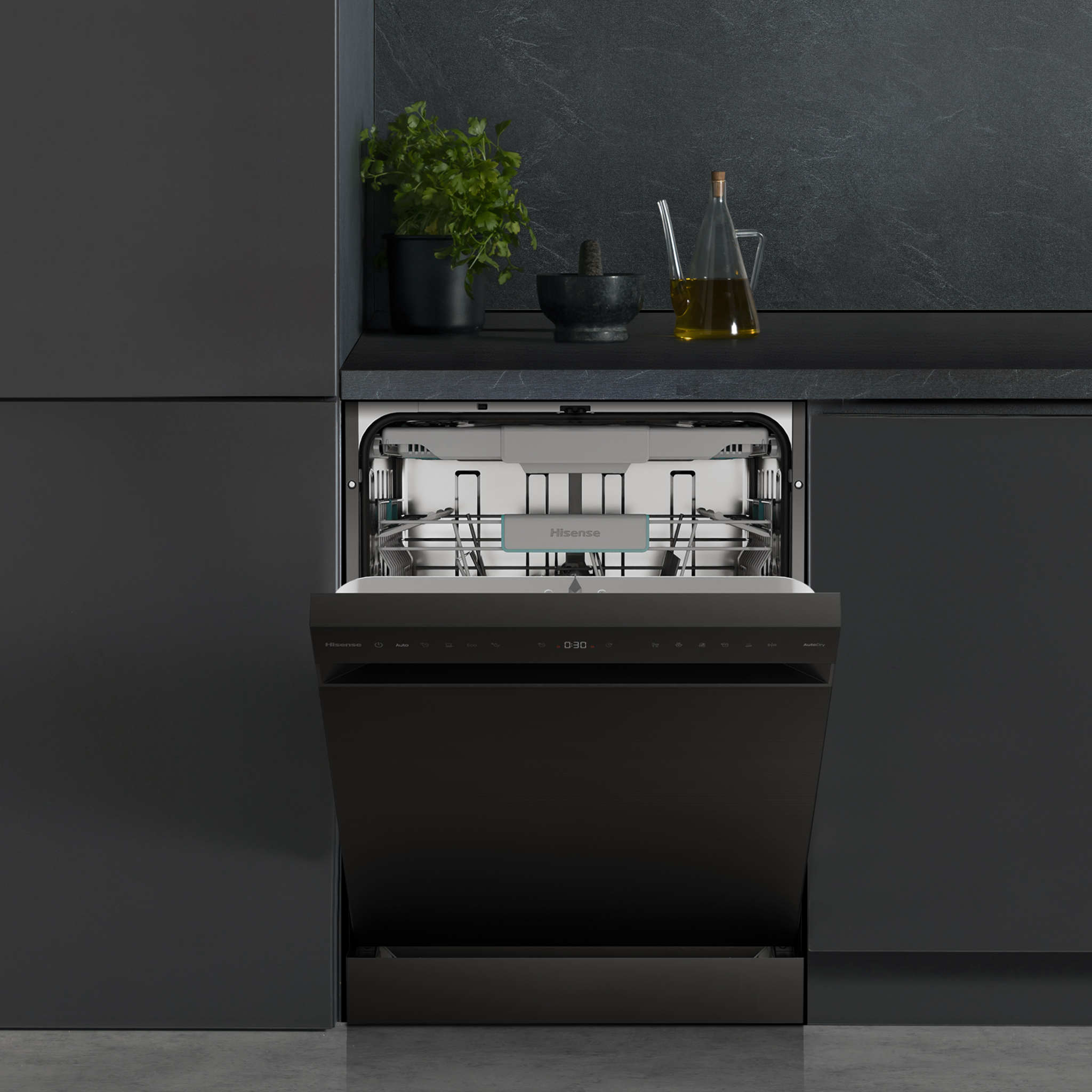 The Hisense HS663A90BXUK delivers smart, efficient cleaning for busy homes. With space for 16 place settings, it’s ideal for families or entertaining. The Automatic Programme intelligently adapts water, temperature and detergent for optimal results at the touch of a button. When you’re short on time, the 1‑Hour programme handles light to medium loads fast. End-of-cycle Auto Dry opens the door and circulates air so dishes come out dry and ready to store. A minimalist touch‑activated display blends seamlessly into contemporary kitchens, while built‑in protections like leak detection offer peace of mind. The HS663A90BXUK combines capacity, ease and performance in one sleek package.