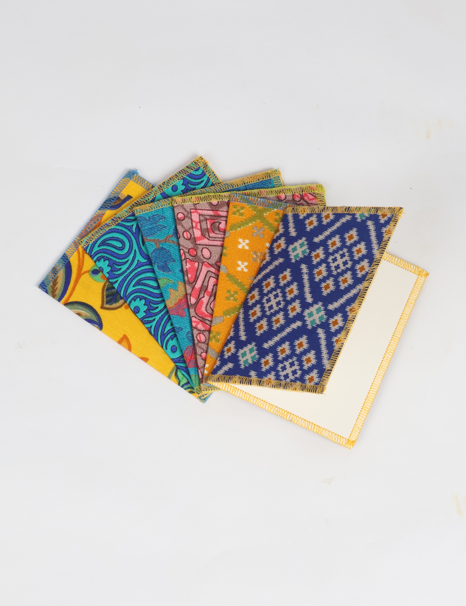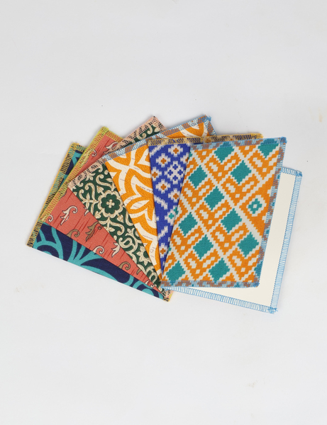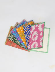 Beautifully unique cards made from colourful recycled sari fabric handmade in India. Pack of six cards to gift to a loved one. The cards are blank inside for you to write your own personal message. Perfect for any occasion. Dimensions: 130 mm x 200 mm Blank inside Handmade in India