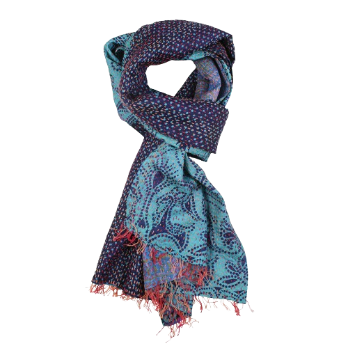 This Fairtrade scarf was handmade from recycled saris by skilled artisans in India. The perfect finishing touch to any outfit. Please note; the scarves are made from recycled saris so, the colours will vary and each one is beautifully unique. Length: 1.9m Material: Recycled sari (100% silk) Made in India. Care instructions: Hand wash in cold water.