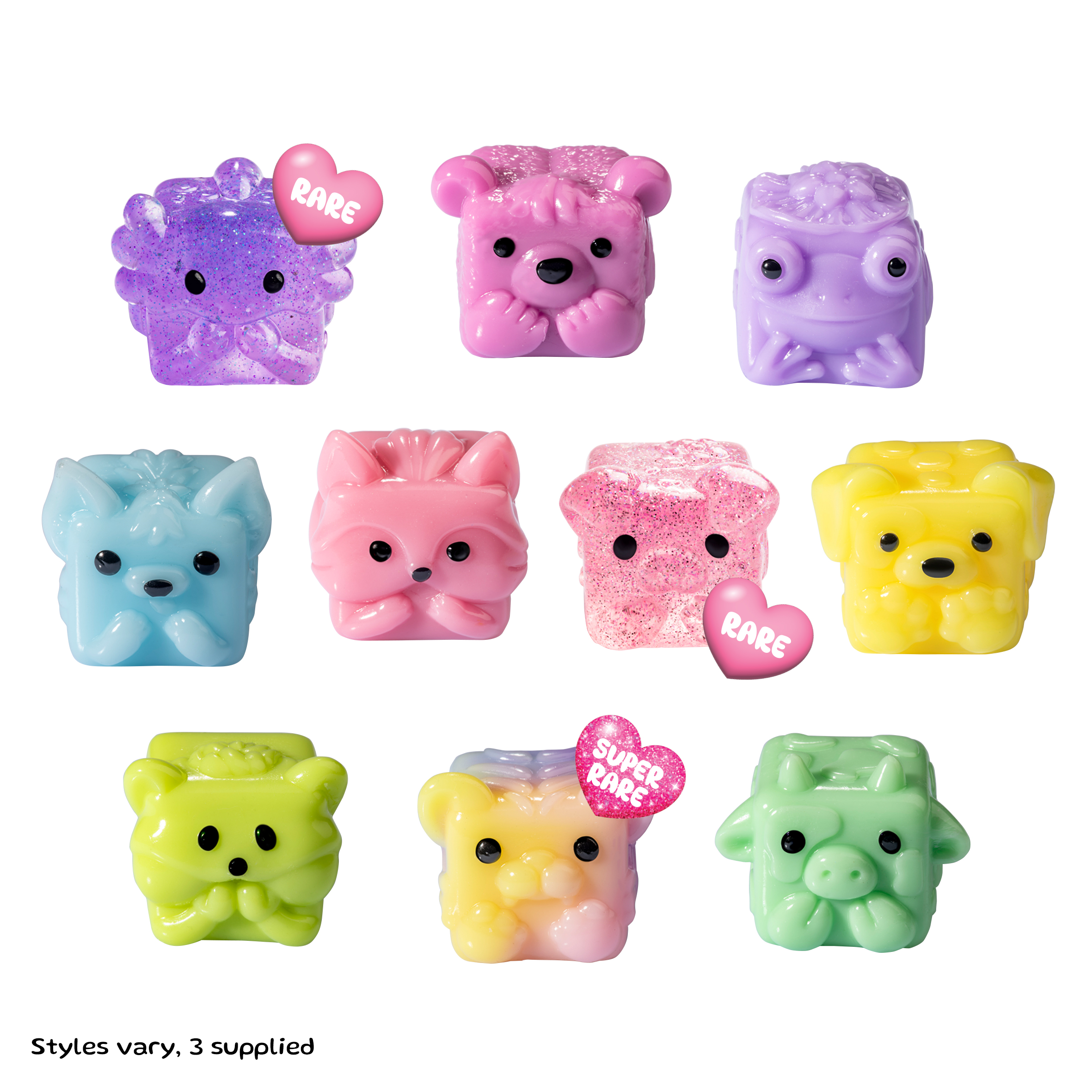 Collect, trade, and grow your MushyKinz family with this Mystery Mini Mushy Taba Squishies Fidget Toy 3 Pack range! Each blind bag includes three mystery mini MushyKinz Taba Squishies - soft, stretchy, and oh-so-satisfying to squish, squeeze and stack. Perfect for fidgeting, sensory play or silly squishy adventures. There are 10 super-cute characters to collect in Series One, including 2 rare and 1 extra-special super rare rainbow edition (each sold separately)! Will you find Button the chocolate-loving bear, Chip the shy little cow, Mochi the magical axolotl or one of the other adorable MushyKinz from the OG lineup? Make sure to keep your MushyKinz happy and clean by washing gently in warm, soapy water, letting them air-dry and popping them back into their cosy little tray after playtime.