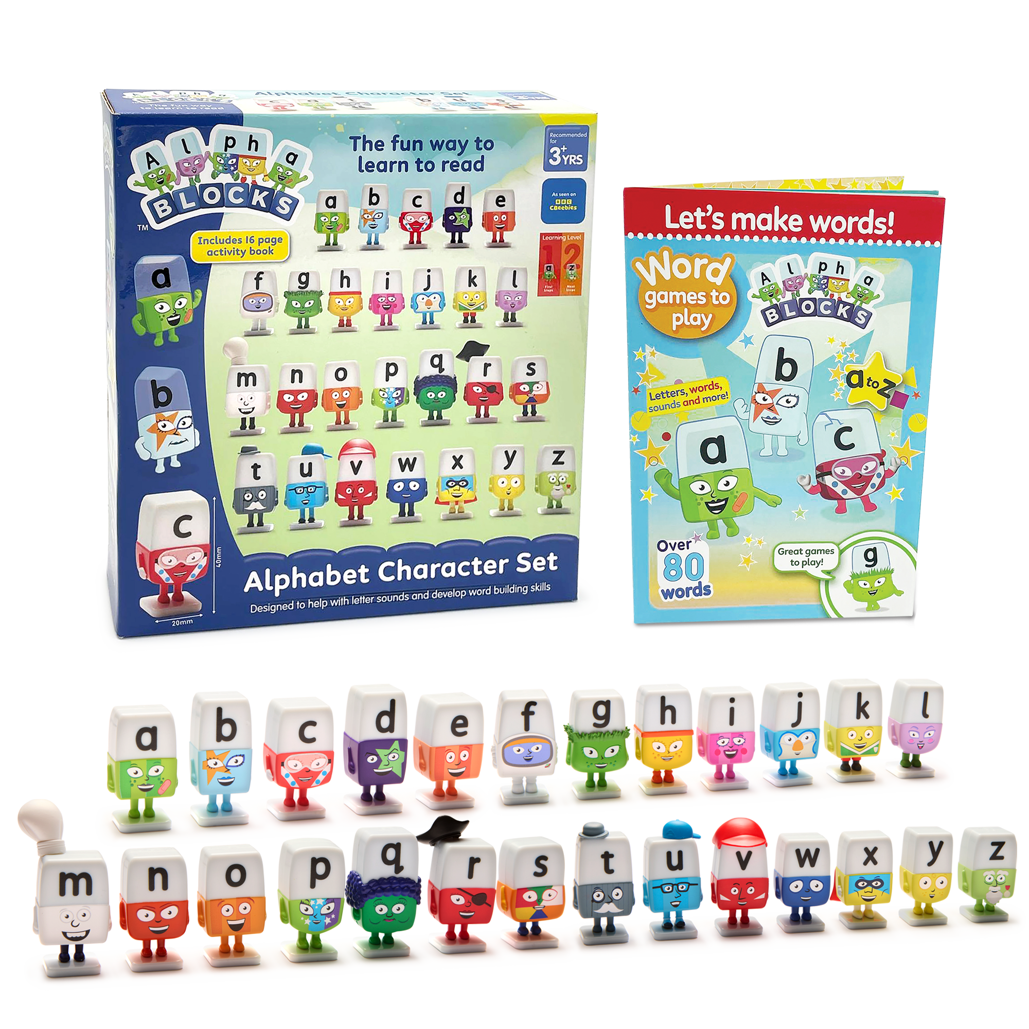 Bring the magical world of the Alphablocks home with this complete set of 26 characters, one for every letter of the alphabet. This character set will help children learn phonics in a playful, hands on way. As kids explore the sounds and put the letters together, they can create real words and experience the fun of Word Magic! The familiar Alphablocks characters make words come to life and support children from their very first letter sounds all the way to confident, independent reading.