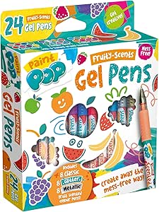 Add a burst of colour and fruity fun to every project with the Paint Pop Scented Gel Pens 24 Pack! This set includes 24 vibrant gel pens featuring 8 glitter pens, 8 metallic pens, and 8 classic colours, each infused with a delightful fruit scent.
