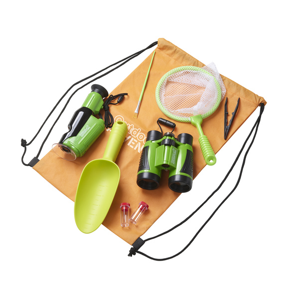 The Outdoor Adventure Mega Explorer Kit is brand new for 2026 and is perfect for explorations, field trips, and outdoor studies. Mini adventurers will love this 9-piece kit includes everything you need as well as a handyl storage bag. See the world in close up through the microscope, grab the binoculars to spot wildlife, and use the hand tools to see what you can discover!