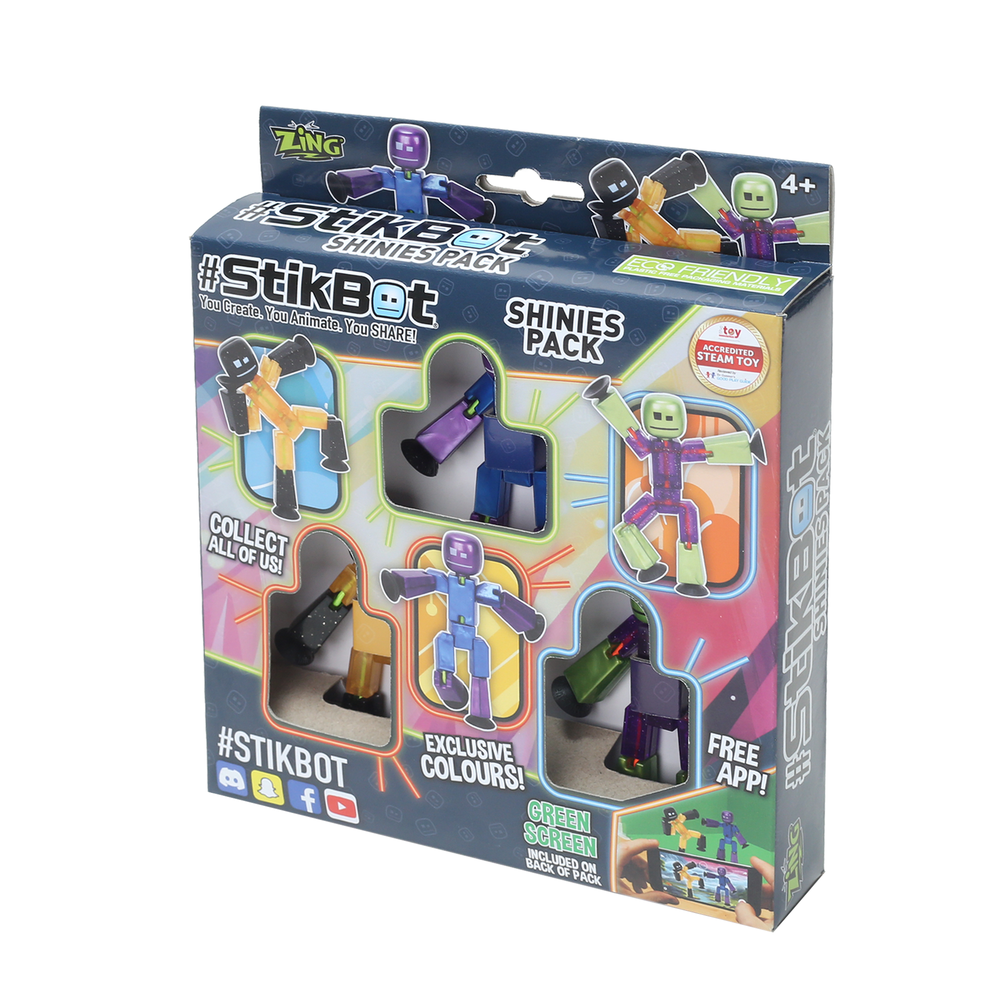 StikBot are the global social sharing phenomenon and an accredited STEAM toy. StikBots are a unique, poseable and collectable figurine that make an engaging fidget toy that is perfect for imaginative play. Their unique design allows for easy positioning on any flat surface thanks to their suction-cup hands and feet. StikBots can be posed in countless ways – their limbs, torso, and even neck can be positioned at multiple different angles! This makes StikBot perfect for making your own stop-frame animation movies using the StikBot Animation App which is free to download for iPhone and Android operating systems. 2026 sees the introduction of Shinies which come in a three pack so children can add to their collection and film, pause and edit their StikBot movies to then share with their friends. The hugely popular StikBot Central Youtube channel provides lots of inspiration and kids can watch other videos on the channel as well as some really innovative weekly StikBot shows.