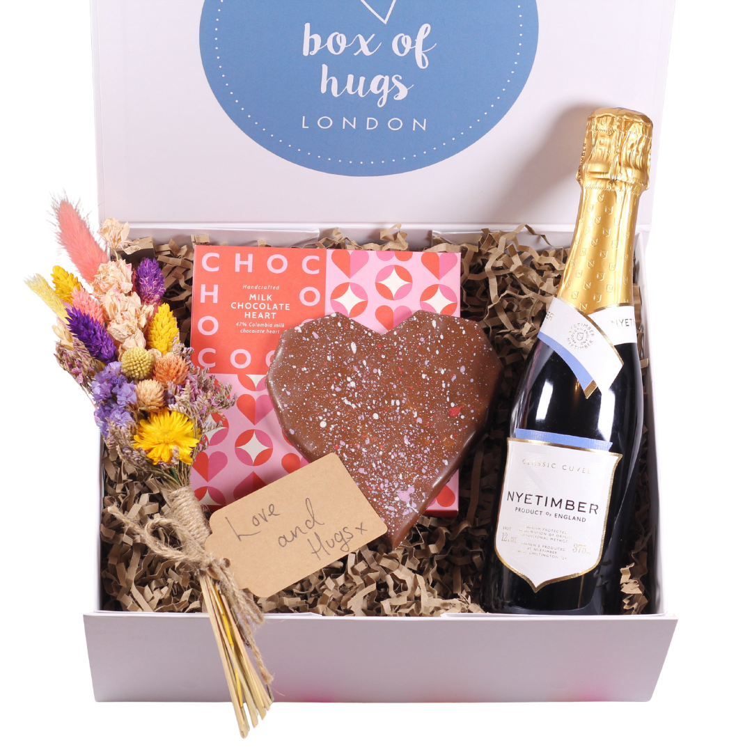 Created for those who want to send something more meaningful than a card or a single gift, the Bubble, Flowers and Chocolates Box of Hugs is a perfect Valentine's Day, ready-to-send care package designed to help people show love from afar. At its heart, this box is about connection and celebration. Inside is a carefully curated mix of indulgent treats and keepsakes, including a bottle of English sparkling wine, a luxury chocolate heart and a beautifully arranged dried flower posy finished with a hand-tied tag reading “love and hugs.” Together, these elements create the feeling of receiving a thoughtful surprise on Valentine's Day. Perfect for Valentine’s Day, anniversaries or romantic “thinking of you” moments, this box offers a modern alternative to traditional Valentine’s gifts. It combines indulgence, sentiment and presentation in one beautifully packaged box that feels personal and thoughtful. Box of Hugs specialises in thoughtful, letterbox-friendly and courier-delivered care packages that help people send comfort, love and celebration when they can’t be there in person. This product is ideal for Valentine’s Day gift guides, romantic gifting features, luxury treat round-ups and small business spotlights