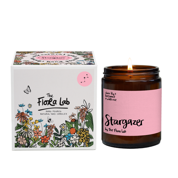 A floral fantasy that’s out of this world. Lovingly intertwined, fresh sheer Lily and delicate white Rose petals, along with a sprinkling of peach, results in Stargazer; an ethereal delight for the senses. Scent Notes Top Notes ;Bergamot, Plum, Peach, White Rose Middle Notes: ;Lily, Rose, Ylang, Jasmine Base Notes: Cedar, Sandalwood, Amber, Musk Hand Poured with a coconut and rapeseed wax. Burn time of 30-35hours.