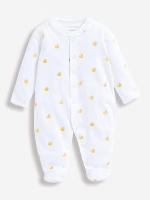 Keywords All Over Duck Embroidery , Anti-Slip Dots On Feet , Duck , Easter , Easy Dressing , Embroidered , Fold Over Scratch Cuffs , New Baby , Organic Cotton , Poppers , Round Neckline , Sleepsuit , Spring , Super Soft , White , Yellow