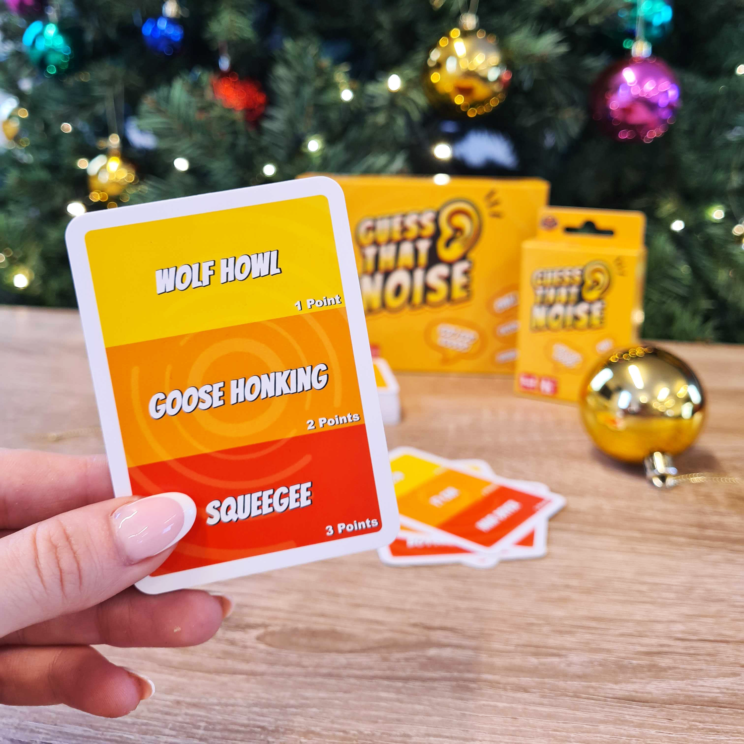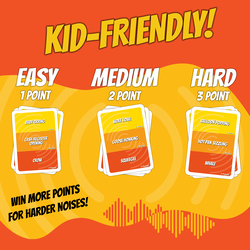 Guess That Noise is a hilarious sound-imitation party game where players compete to recreate ridiculous noises using only their voice, no gestures, no words. From animal sounds to everyday noises, players must perform their best (or worst) impressions while everyone else tries to guess what it is. Learn the rules in under two minutes and jump straight into the laughter. Each card features noises ranging from easy to challenging, so players of all ages can join the fun. Whether it’s Grandpa squawking like a parrot or someone attempting the sound of a half-empty ketchup bottle, the results are guaranteed to get the whole room laughing. Compact and travel-friendly, Guess That Noise is perfect for family parties, holidays, and game nights wherever you go.