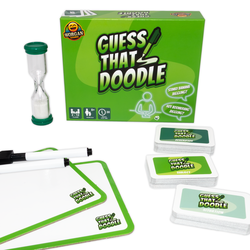 Guess That Doodle is a fast-paced competitive doodling party game where players race against the clock to draw ridiculous combinations while their teammates try to guess them. Draw three prompt cards, flip the 60-second timer, and start sketching, the first team to guess all three parts correctly wins the round. You don’t need to be an artist to play. The prompts are simple, silly, and accessible for players of all abilities, which makes the game perfect for family parties and mixed-age groups. Even younger players can join the fun by guessing the increasingly absurd doodles being drawn. With 120 prompt cards creating over 64,000 possible doodle combinations, every round brings something new, whether it’s someone trying to draw a Nerdy Avocado Juggling or another bizarre mash-up. The game includes dry-wipe whiteboards, pens with erasers, and a sand timer for quick setup and endless replayability. Winner of Maddie’s Golden Toy Award at London Toy Fair 2026.