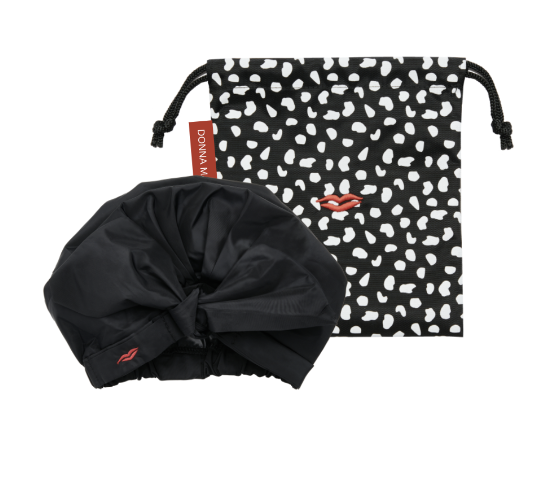 SHOWER OR POOL - ALWAYS LOOK COOL! Embrace your inner 1950's style icon and fight the frizz with our BRAND NEW kitsch black shower hat featuring a beautiful bow and of course our iconic red lip. This very stylish black shower cap will fit your head perfectly, protecting your hair from unwanted splashes in either the shower or the pool, extending the life of your blow-dry or styling. Look chic whilst you shower or cool by the pool - wherever you use your hat, you will have dry, frizz free hair when you are done! Featuring a cute signature red lip and waterproof pouch.