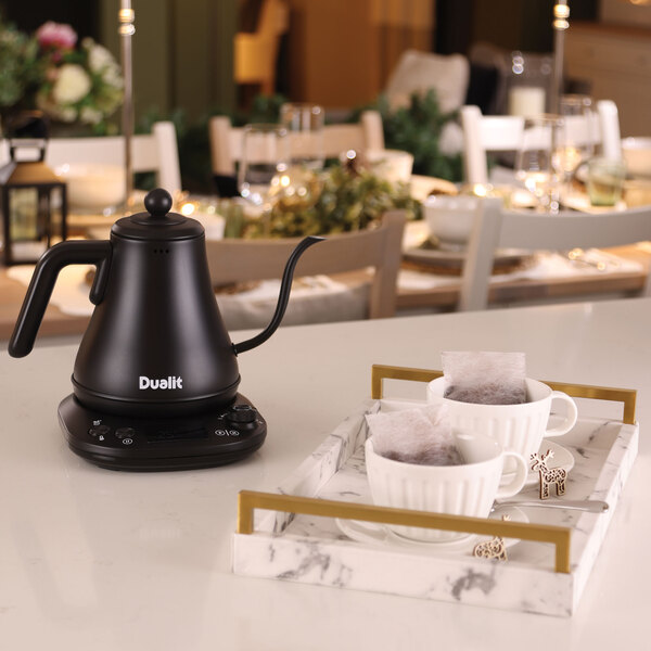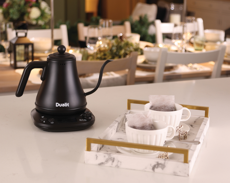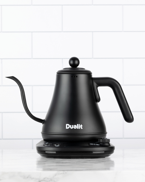 Dualit's Pour Over Kettle is the ultimate piece of kit for coffee afficionados, who want to make a professional-style brew at home. Pour over is often chosen over other brewing methods as it accentuates flavours and allows aromas to shine. The Pour Over Kettle features a thin, curved gooseneck spout for a better reach and even water flow, which allows for a consistent and slow coffee extraction, every time. This results in maximum flavour and aroma from the coffee grounds for barista-quality filter coffee made in your own kitchen. . Thanks to a precise brewing temperature, which can be adjusted one degree at a time from 38˚C to 100˚C, it is ideal for use with everything from filter coffee to herbal teas.