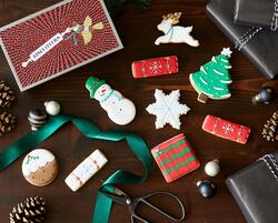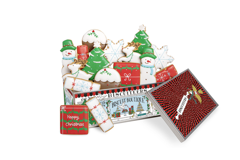 Chocolate flavour hand-iced biscuits in a keepsake tin