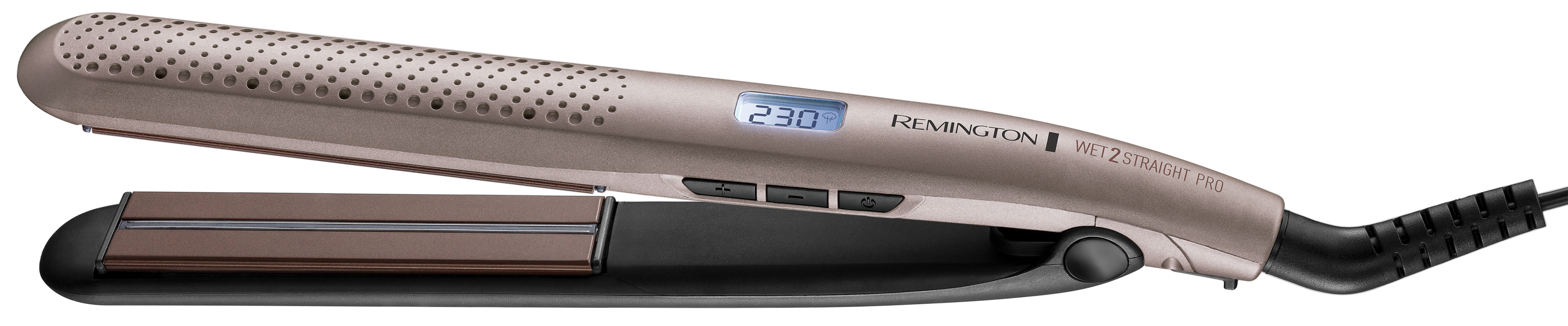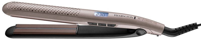 Want that straight, sleek look but struggling for time to style? Cue the Remington Wet 2 Straight Pro Straightener, to straighten your damp hair with confidence and cut your styling time in half*! Thanks to Advanced Wet 2 Straight Technology, this sophisticated tool constantly monitors the levels of moisture in the hair with its Moisture Sensor and adjusts the temperature of the plates accordingly. With each stroke, the Exclusive Venting System works simultaneously with the Moisture Sensor, heating and then evaporating excess water particles through holes on the outside of the casing – leaving your hair both dry and straight. What’s more, you can style your hair from wet or dry thanks to the different built-in styling modes. Selecting the Wet Mode will activate the technology for use on damp hair, meaning you can shower, towel dry and straighten. Alternatively, Dry Mode enables the straightener to work like a standard styler, so whether it’s a hair wash day or not, the Wet 2 Straight Pro Straightener offers complete styling flexibility. The Advanced Ceramic Coated Plates are Infused with Frizz Resistant Micro Conditioners which transfer onto the hair with every pass, leaving the hair looking healthy and smooth. With an Ultra-Fast Heat-Up of only 15 seconds and Digital Temperature Controls with settings up to 230°C, this straightener is the only tool you’ll need for instant glam, straight from the shower. *Vs standard drying & styling with Remington tools in lab tests