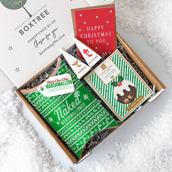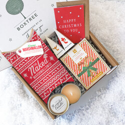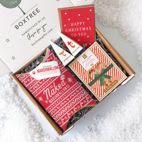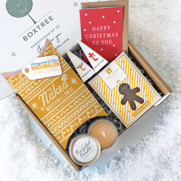 This classic Christmas gift box is filled with everything you need to send some festive cheer. Delicious Christmas edition chocolate and marshmallows and warming seasonal tea blends. Plus why not add a festive scented candle for the ultimate Christmas hamper. WHAT'S IN THE BOX? Christmas Chocolate Bar // Love Cocoa Choice of Christmas Pudding, Peppermint Bark or Gingerbread. Festive Marshmallow // The Naked Marshmallow Co. Available in Mint Choc Chip, S'Mores or Honeycomb & Choc Festive Tea Duo // Twist Teas Tasty Christmas tea blends Why not add a festive scented candle? Festive Scented Candle Tin // Recycled Candle Company Made from 100% recycled wax Gift Wrap, Gift Box & Hand-written Card GIFTS THAT GIVE BACK 10% of all gross profits from Twist Teas are donated directly to the Peterson’s Fund For Children. Love Cocoa plants a tree for every bar sold.