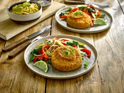 Inspired by the flavours of Japan, we’ve blended all the fragrant, spicy and sweet flavours of Japanese cooking with vibrant green vegetables to create these fiery little rice cakes. A base of rice, edamame beans and asparagus topped with a spicy gochujang sauce for a delicious fiery kick all coated in a crispy crumb.