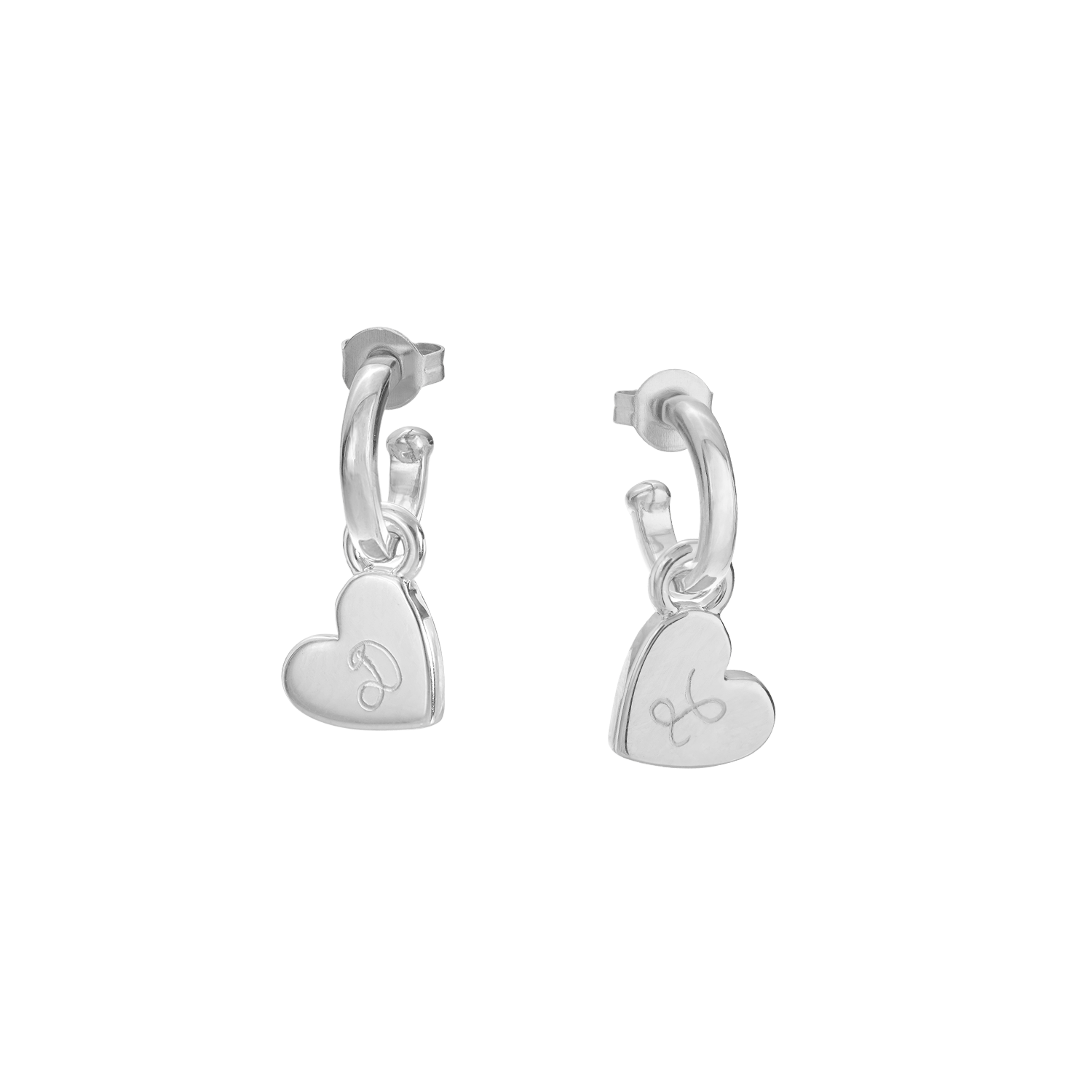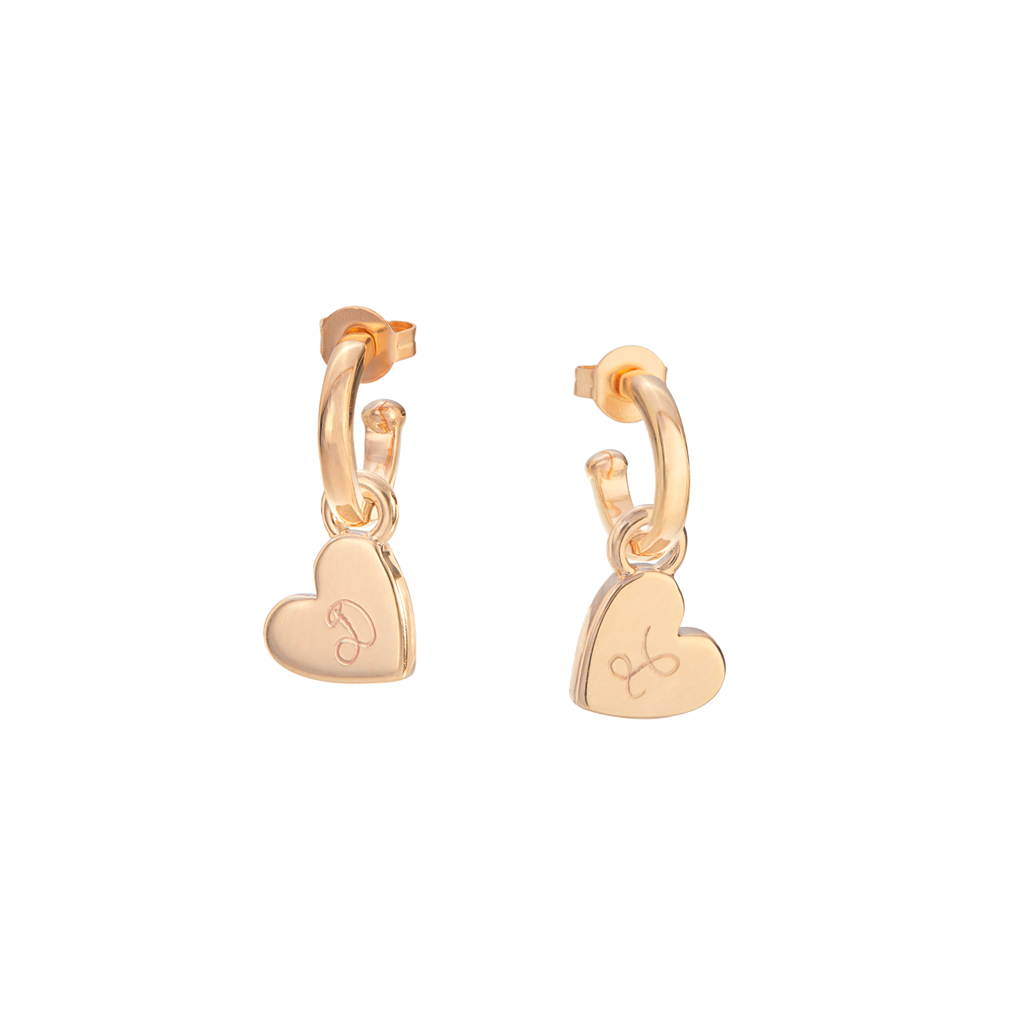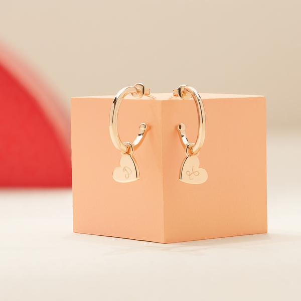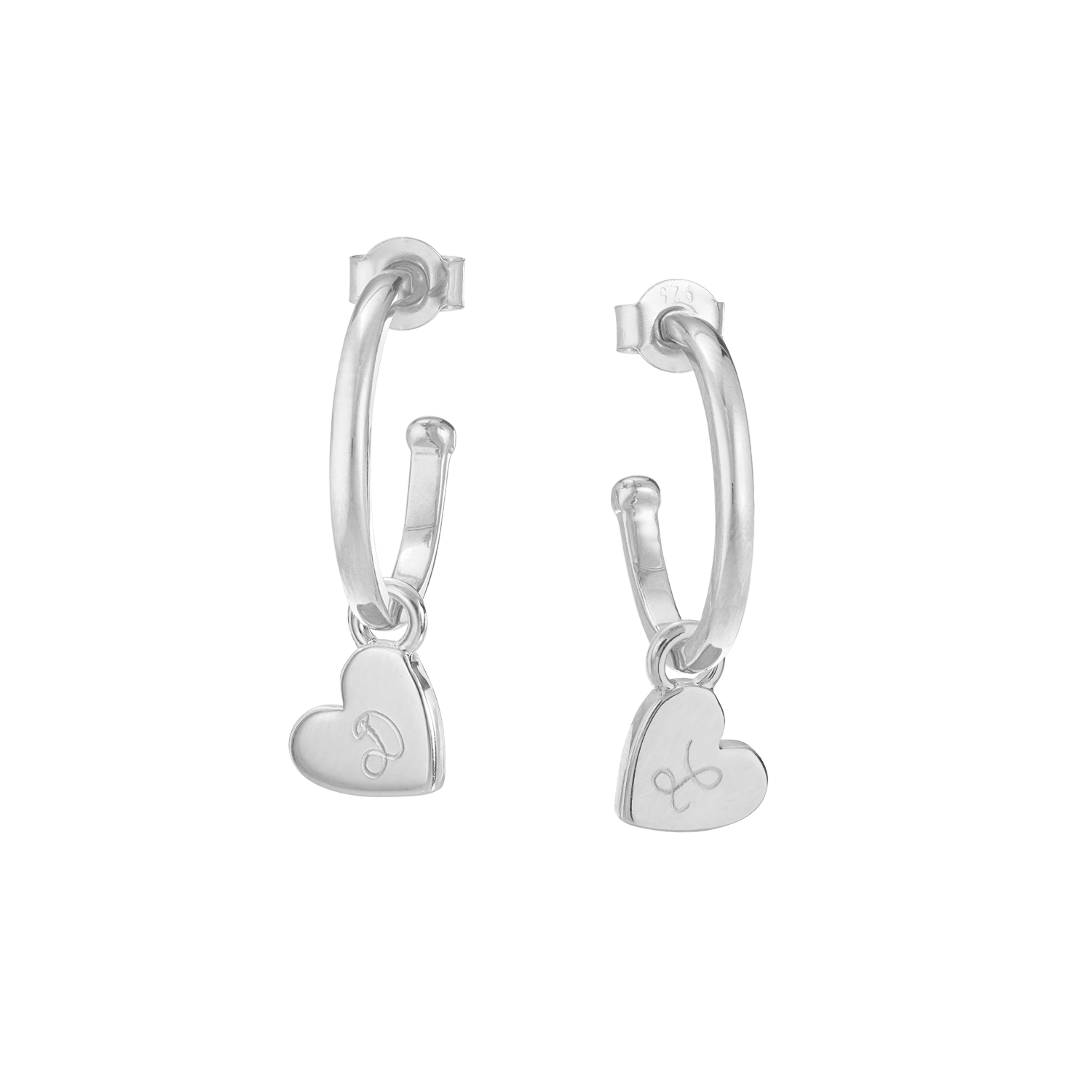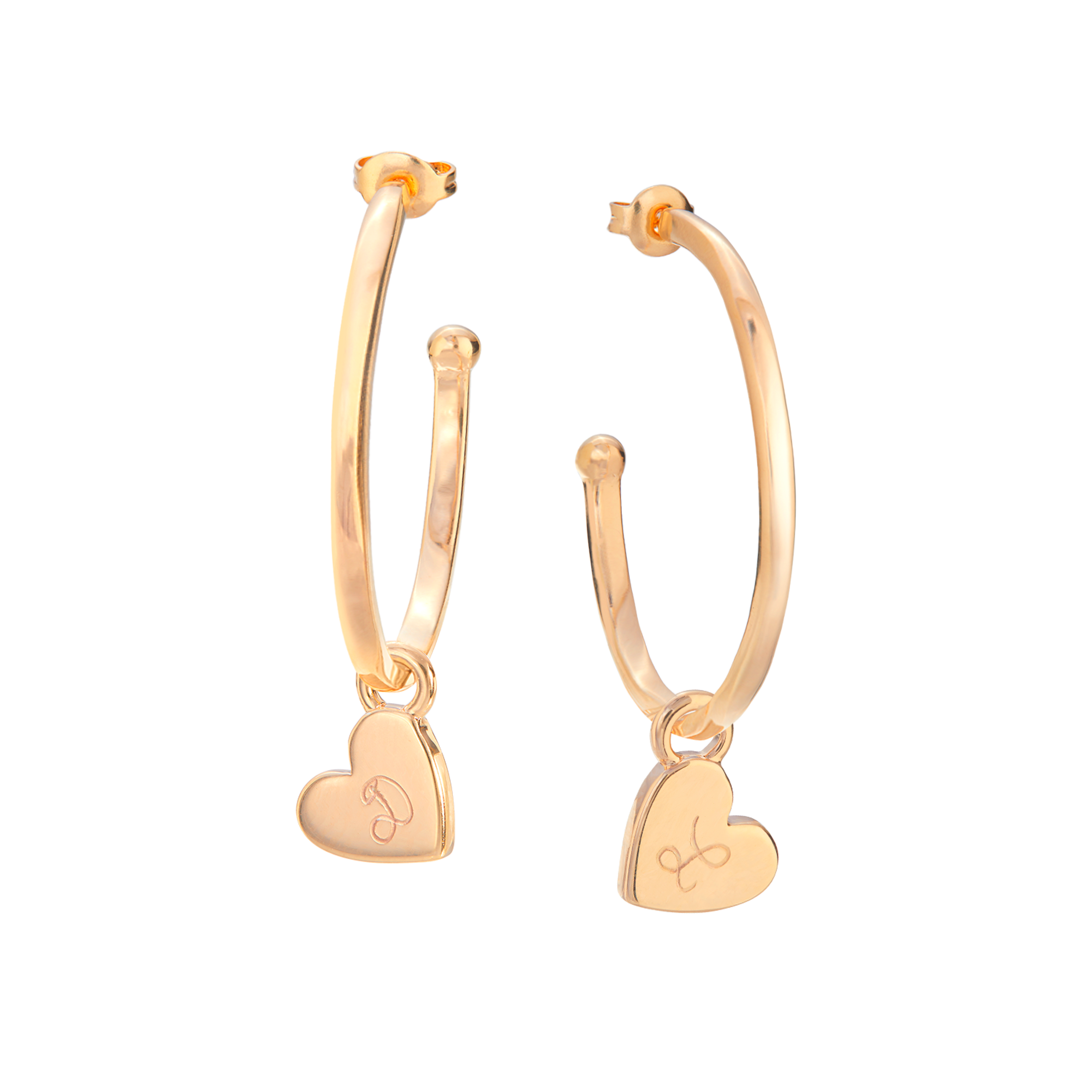 Available in Mini, Midi and Maxi hoops, this set of Personalised Heart Hoop Earrings features a a delicate heart, hand-engraved pendants with the initial or number that means the most to you.