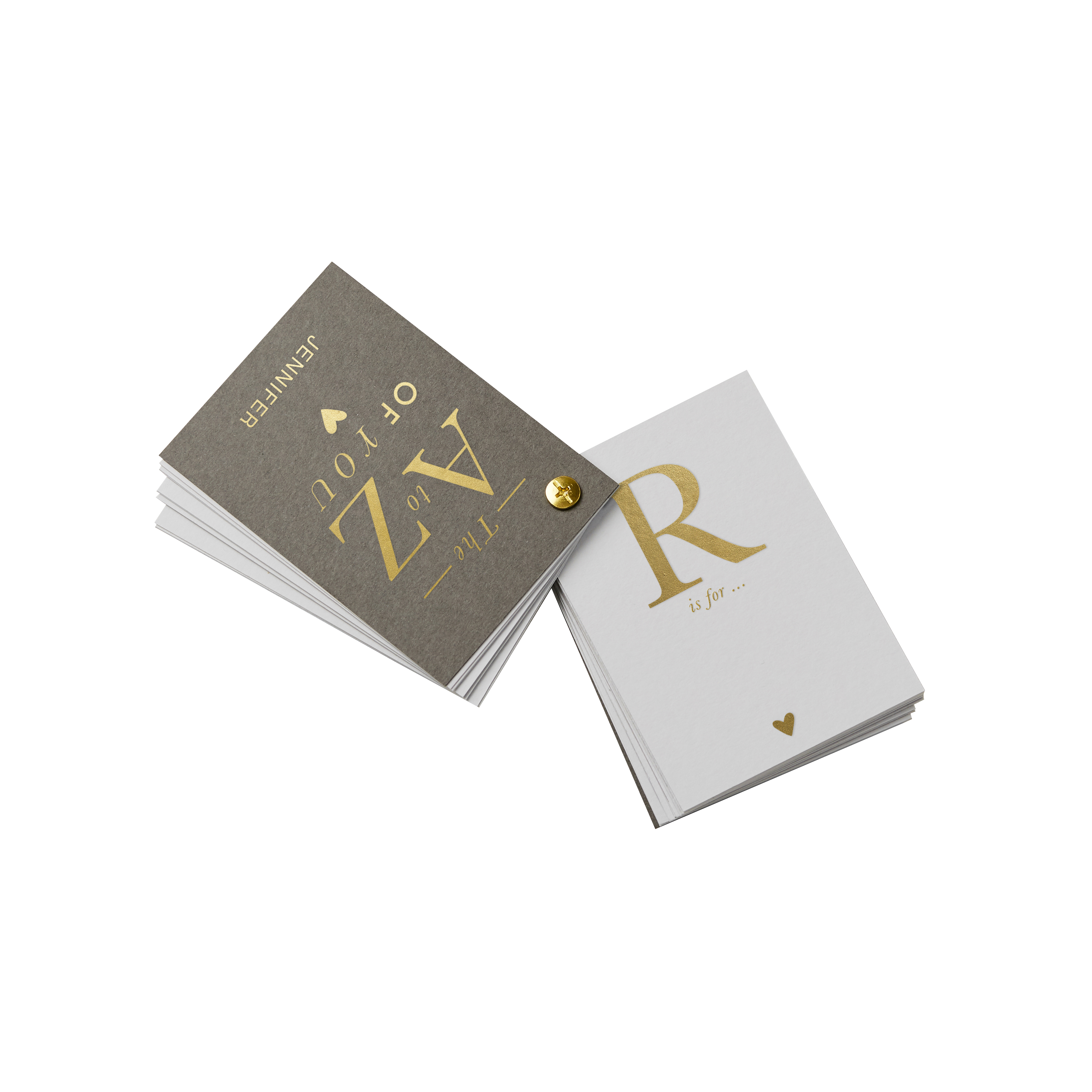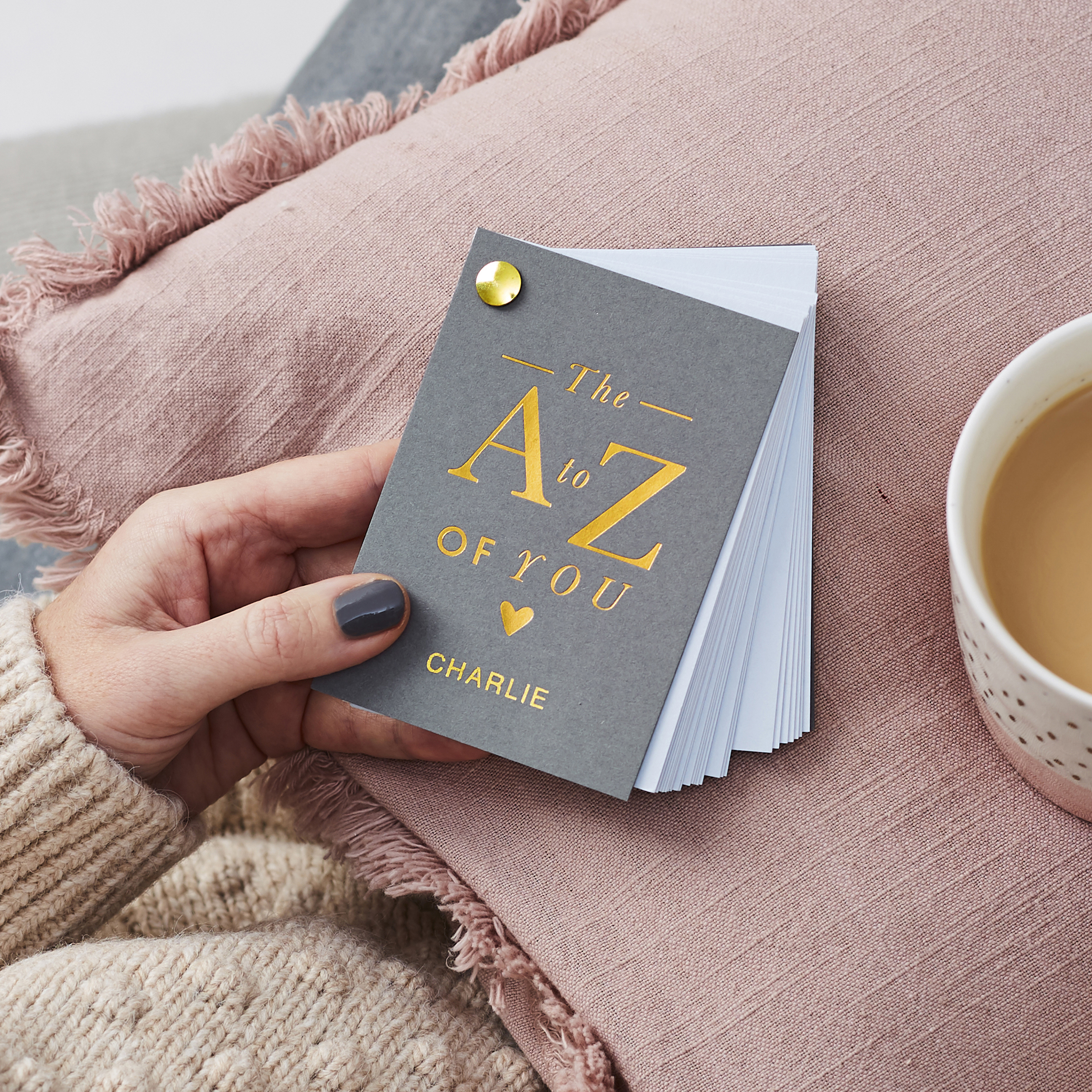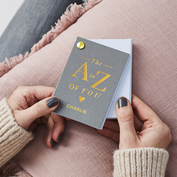 Capture the alphabet of your partner or friend with this delightful personalised A-Z of You Book. The darling personalised mini ‘book’ comes foil embossed with every letter from A to Z for you to fill in 26 reasons why the recipient is absolutely brilliant! A delightful gift for Valentine’s Day, an anniversary or just because, this lovely little book will bring joy for many years to come. An optional gift box is available Dimensions: the mini book measures 7.4 x 10.5 cm